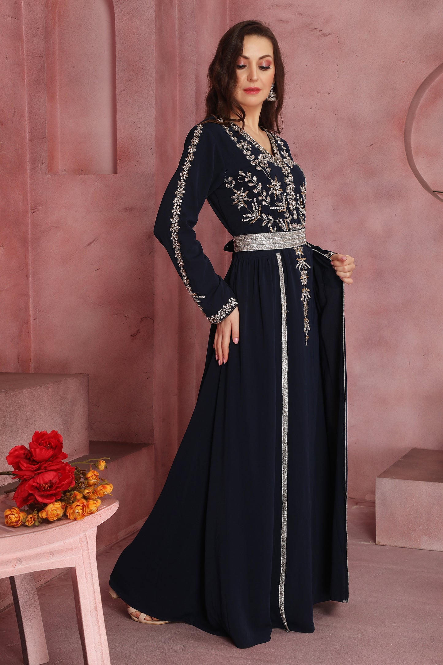 Navy Blue Embroidered Kaftan for Women |