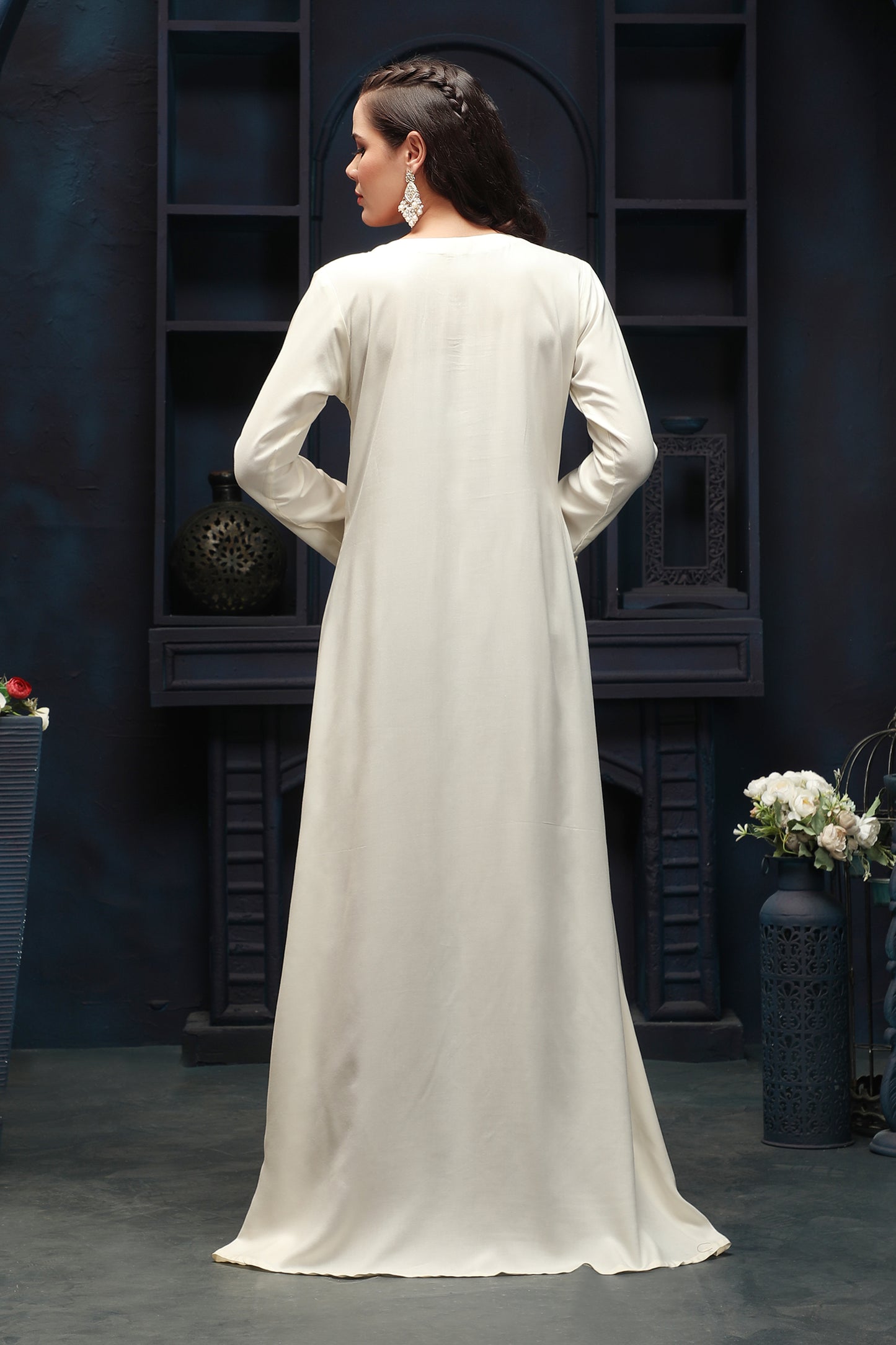 Designer Jalabiya in Ivory with Multicolor Embroidery