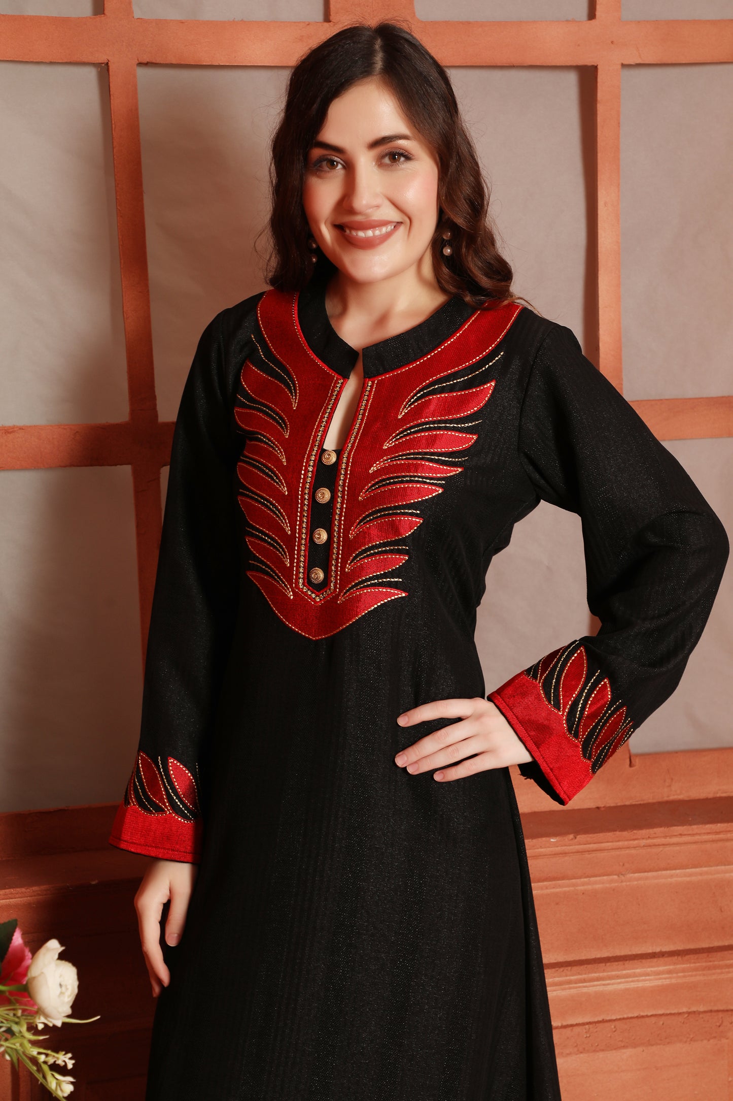 Classic Black Embroidered Maxi Dress For Women |