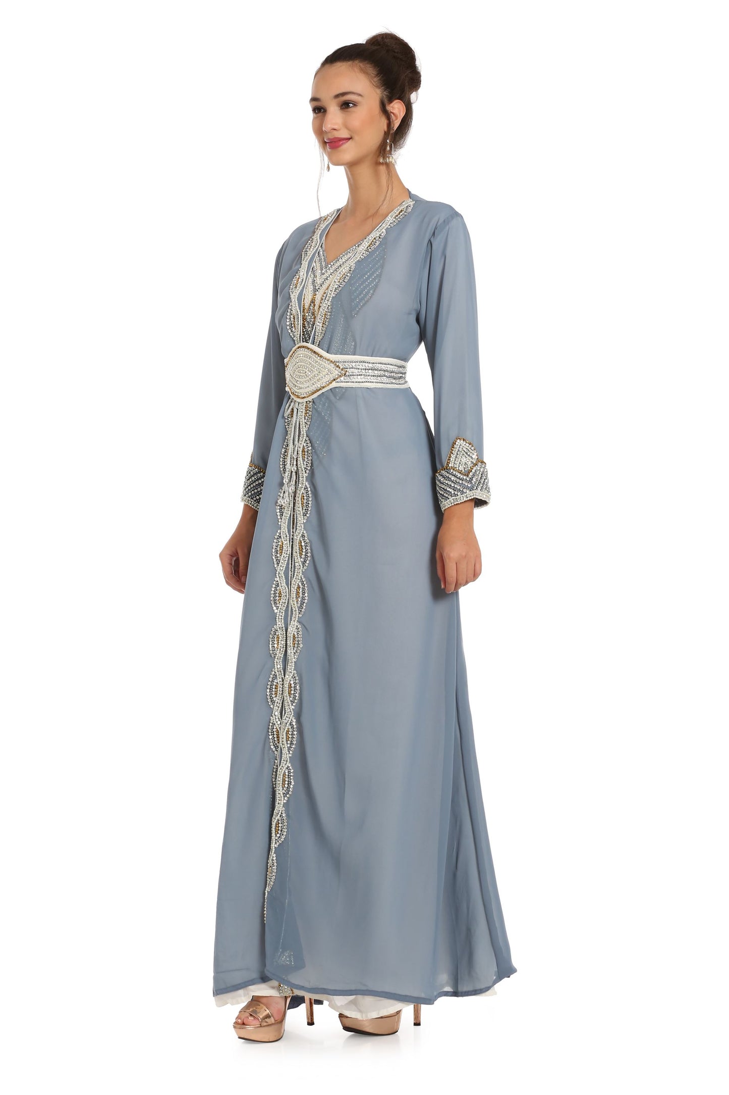 Grey Kaftan with Hand Embroidery 3pcs Maxi dress
