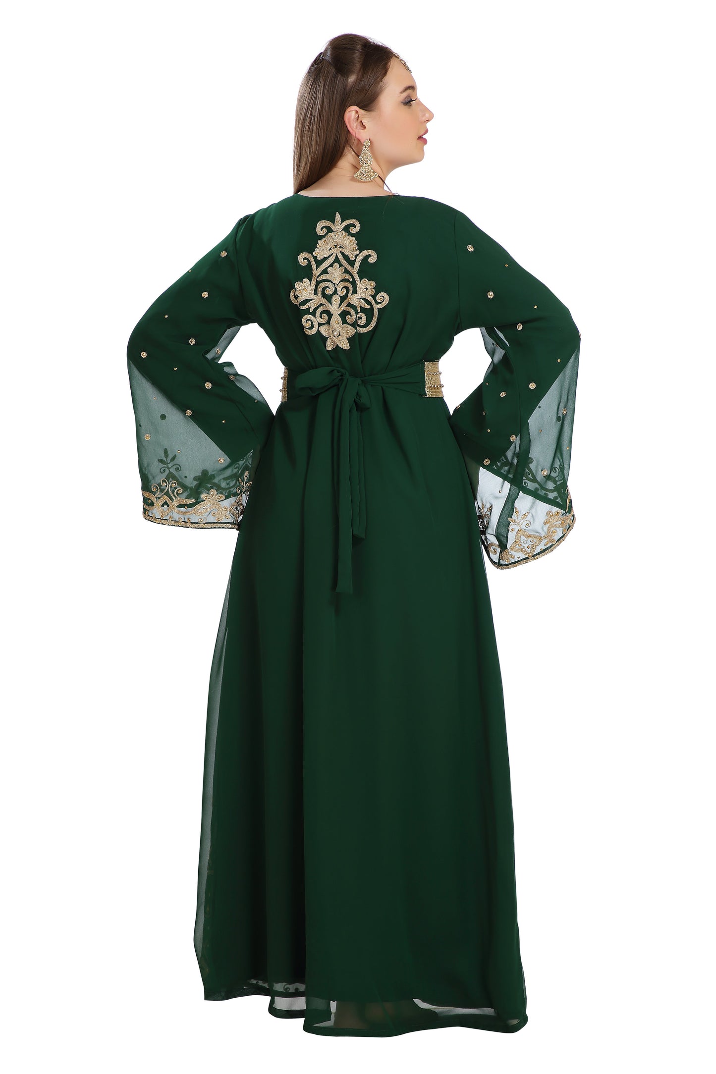 Hand Zari Work Embroidery Henna Party Abaya Bell Sleeve Caftan 2 Piece Set