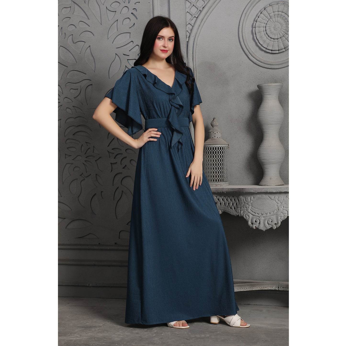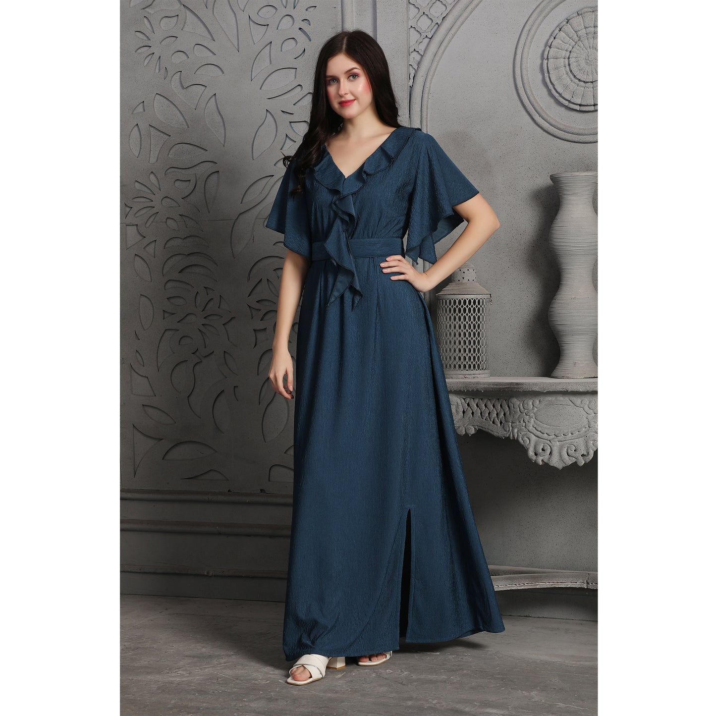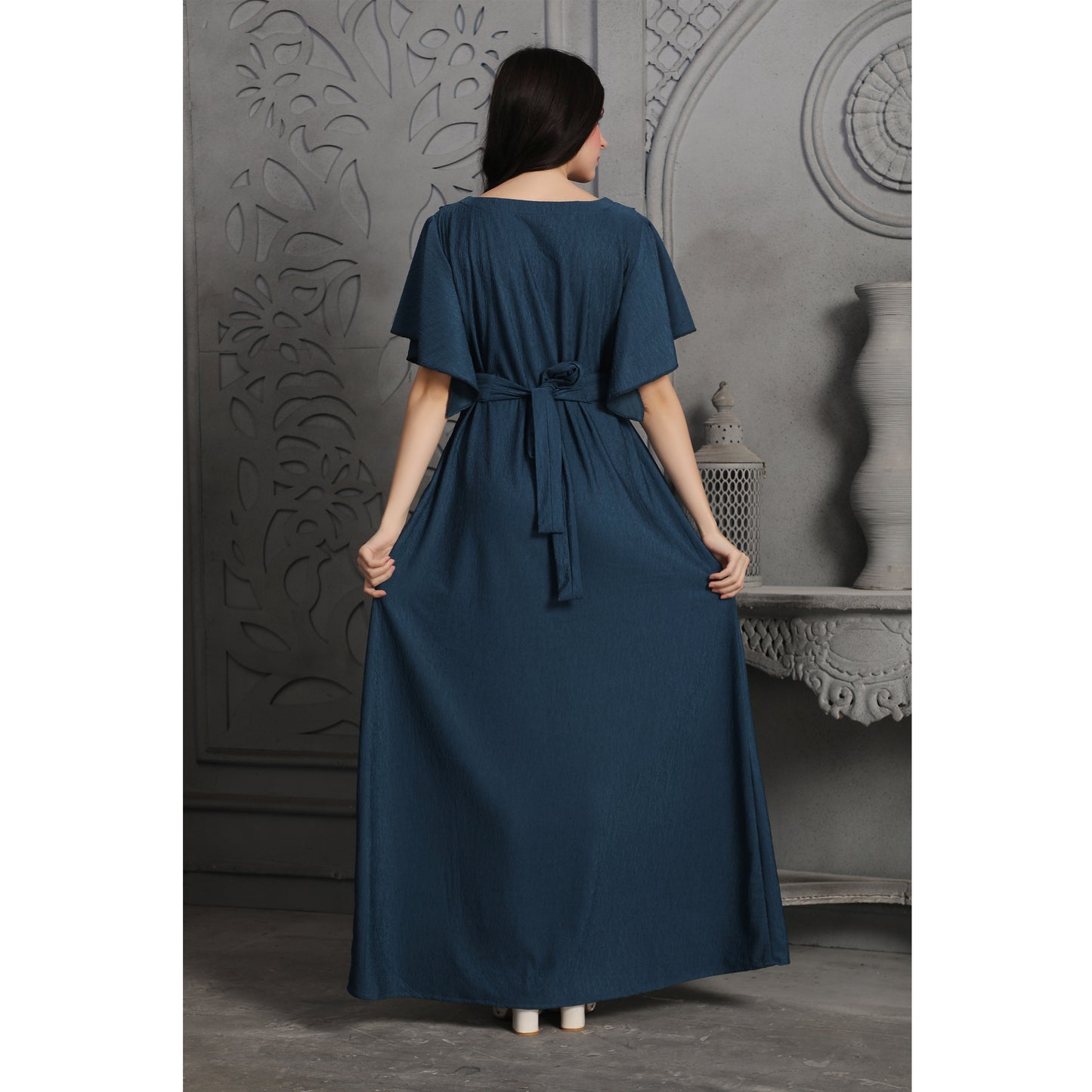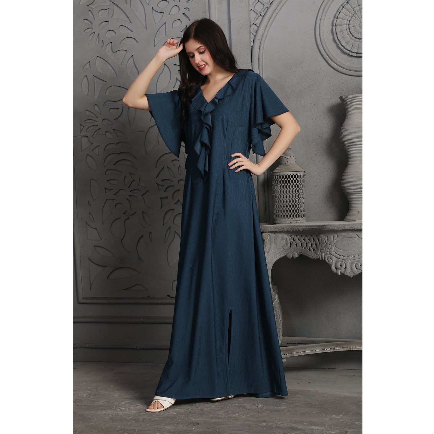 Smoky Blue Textured Dubai Style Dress |