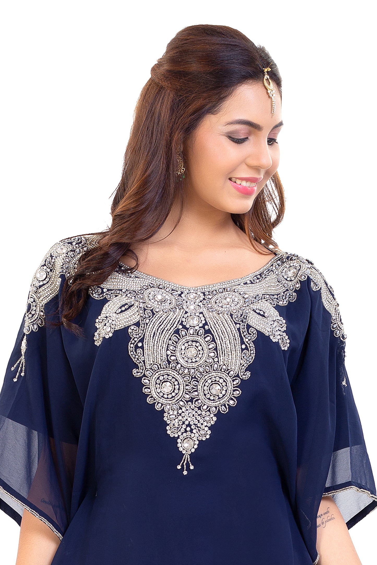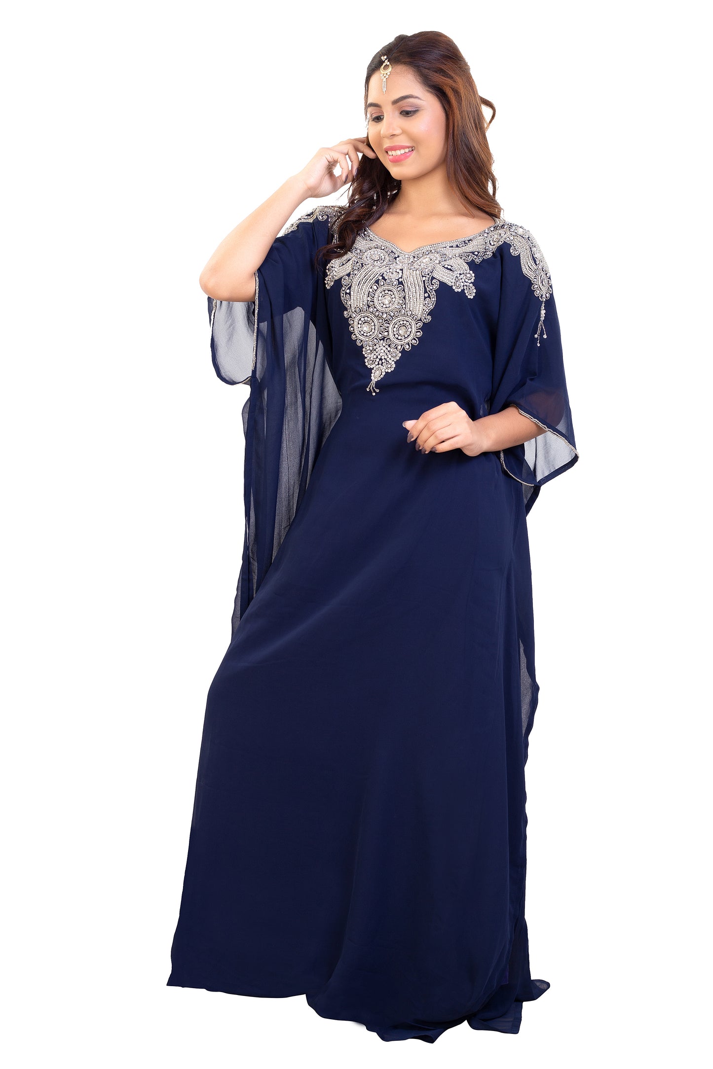 Poncho Dress Navy Blue Long Maxi Gown - Maxim Creation