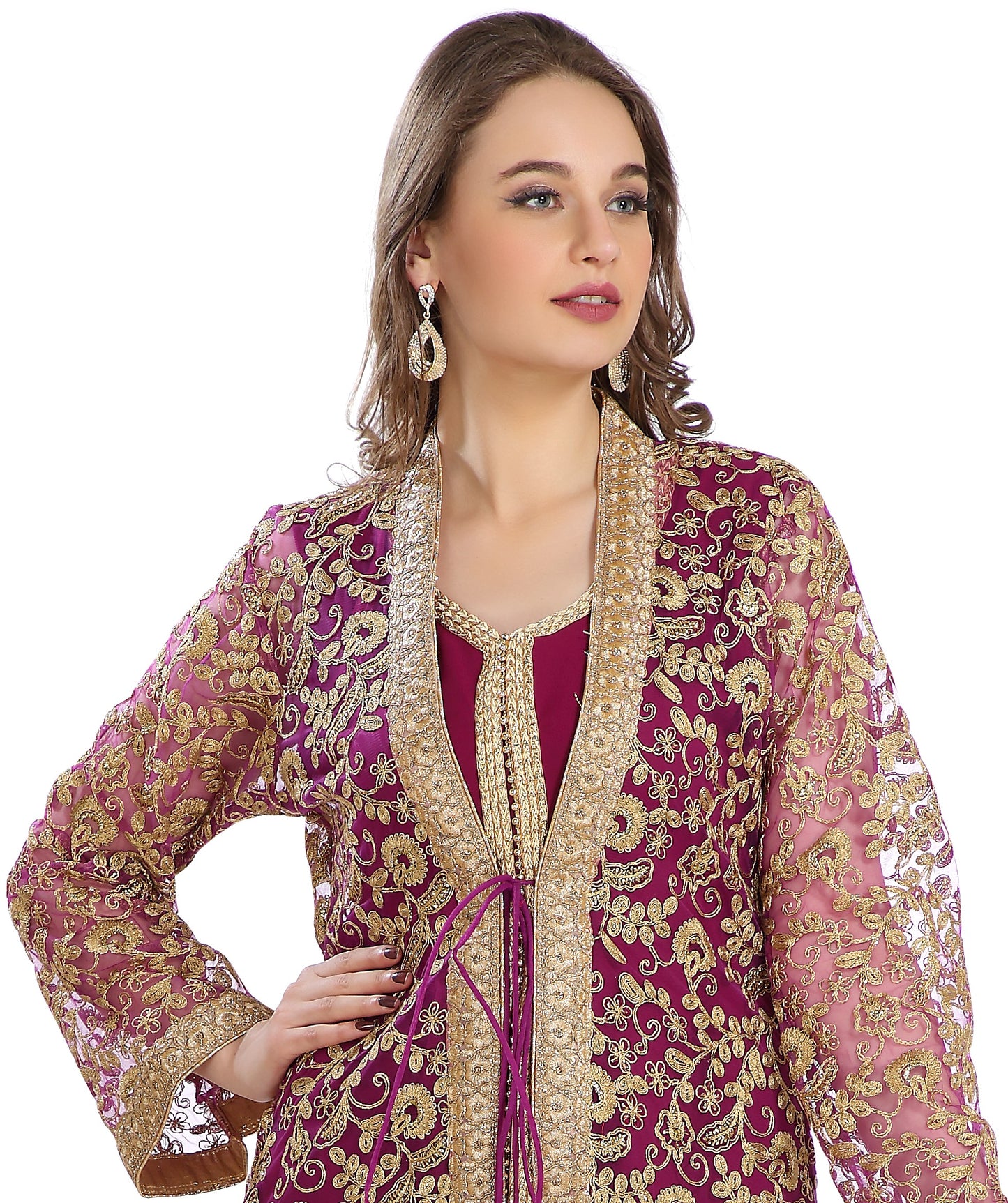 French Cardigan Oriental Wedding Robe With Embroidery Work |