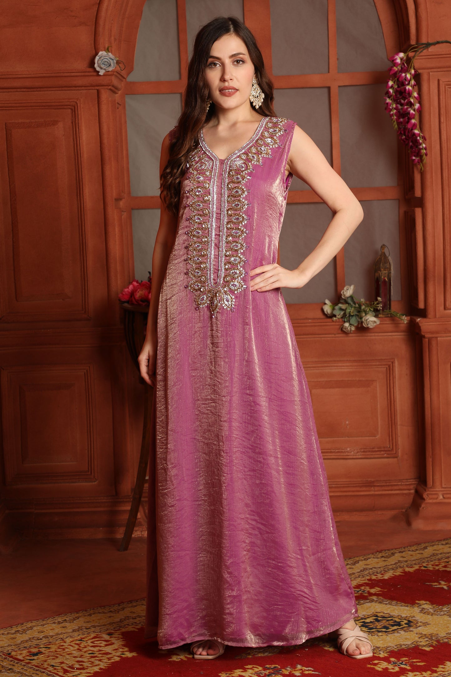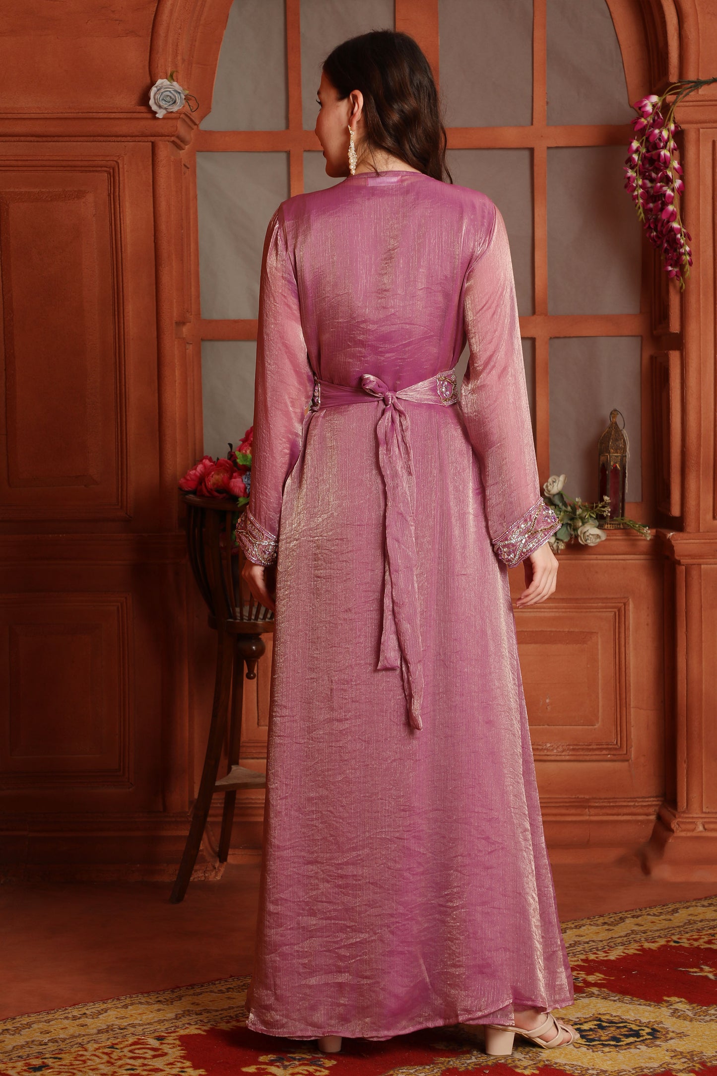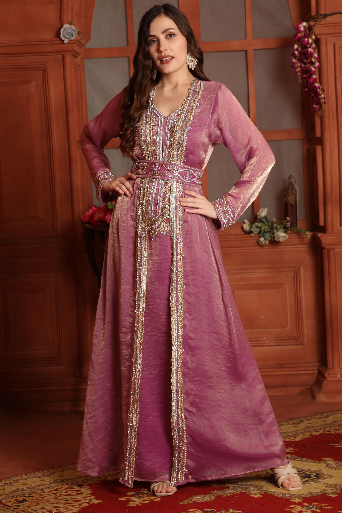 Pink Moroccan Kaftan Gown – Embellished Kaftan with Belt |