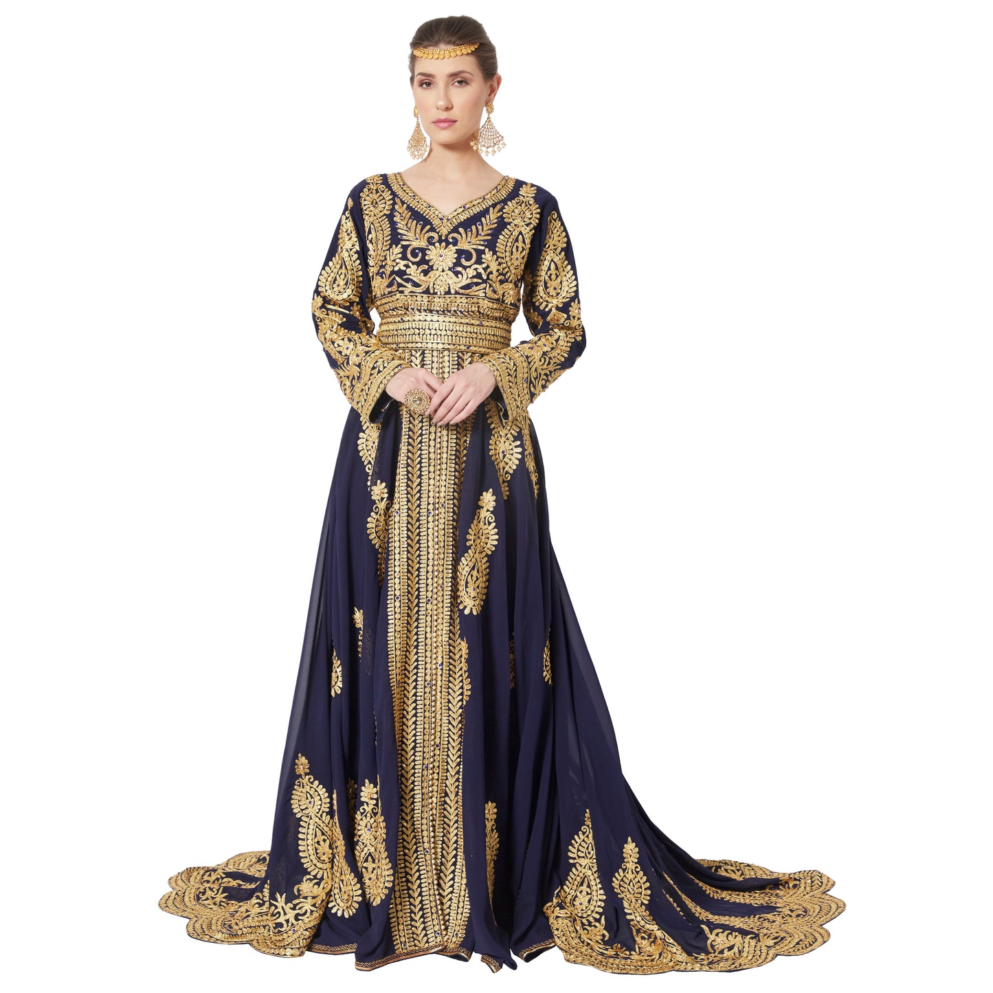 Traditional Embroidery Caftan Bridal Wedding Kaftan Gown With Tail / Train