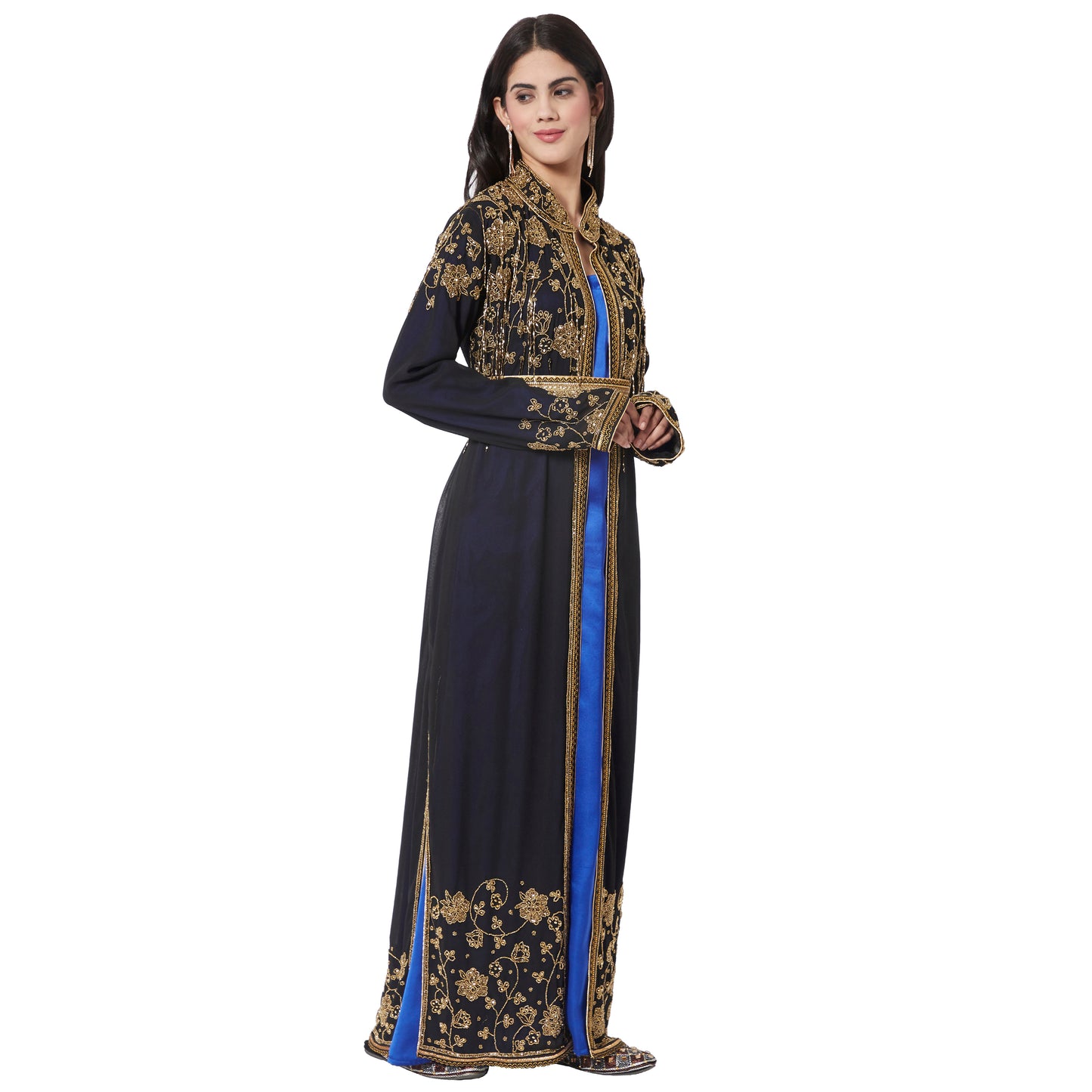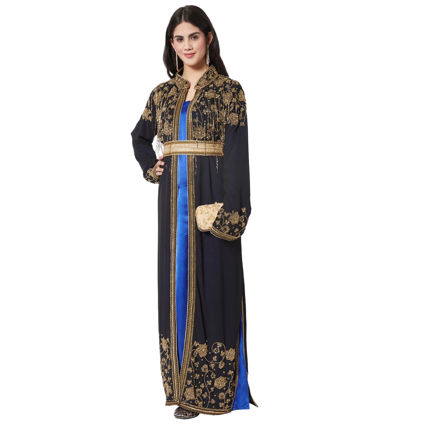 Long Cardigan with Golden Hand Work Embroidery by Maxim Creation - Maxim Creation