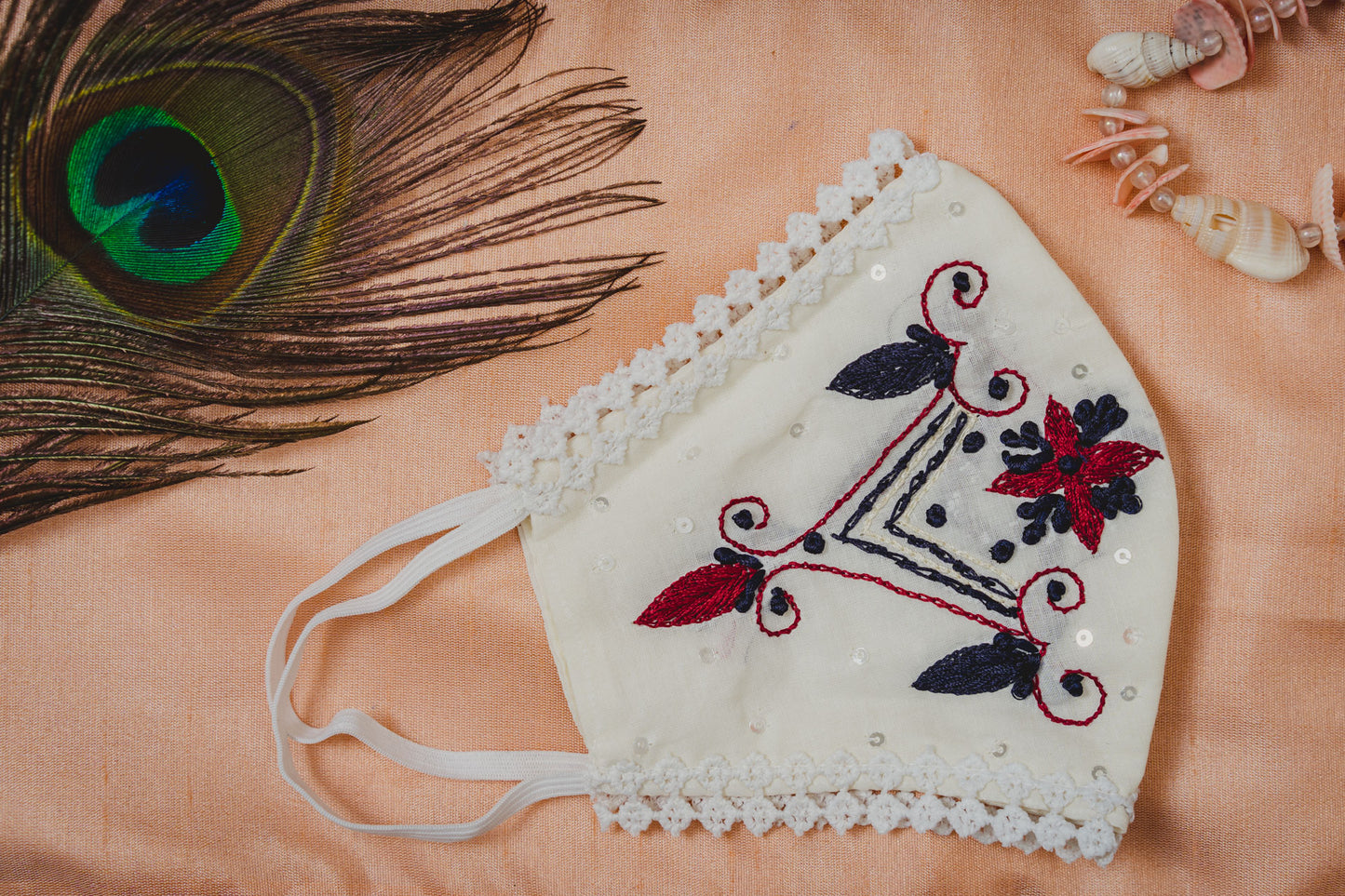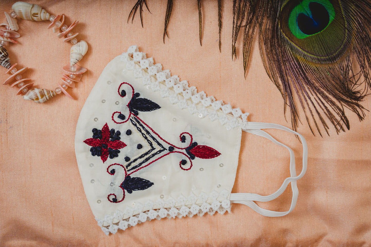 Cream Cotton Face Mask with Floral Embroidery - Maxim Creation