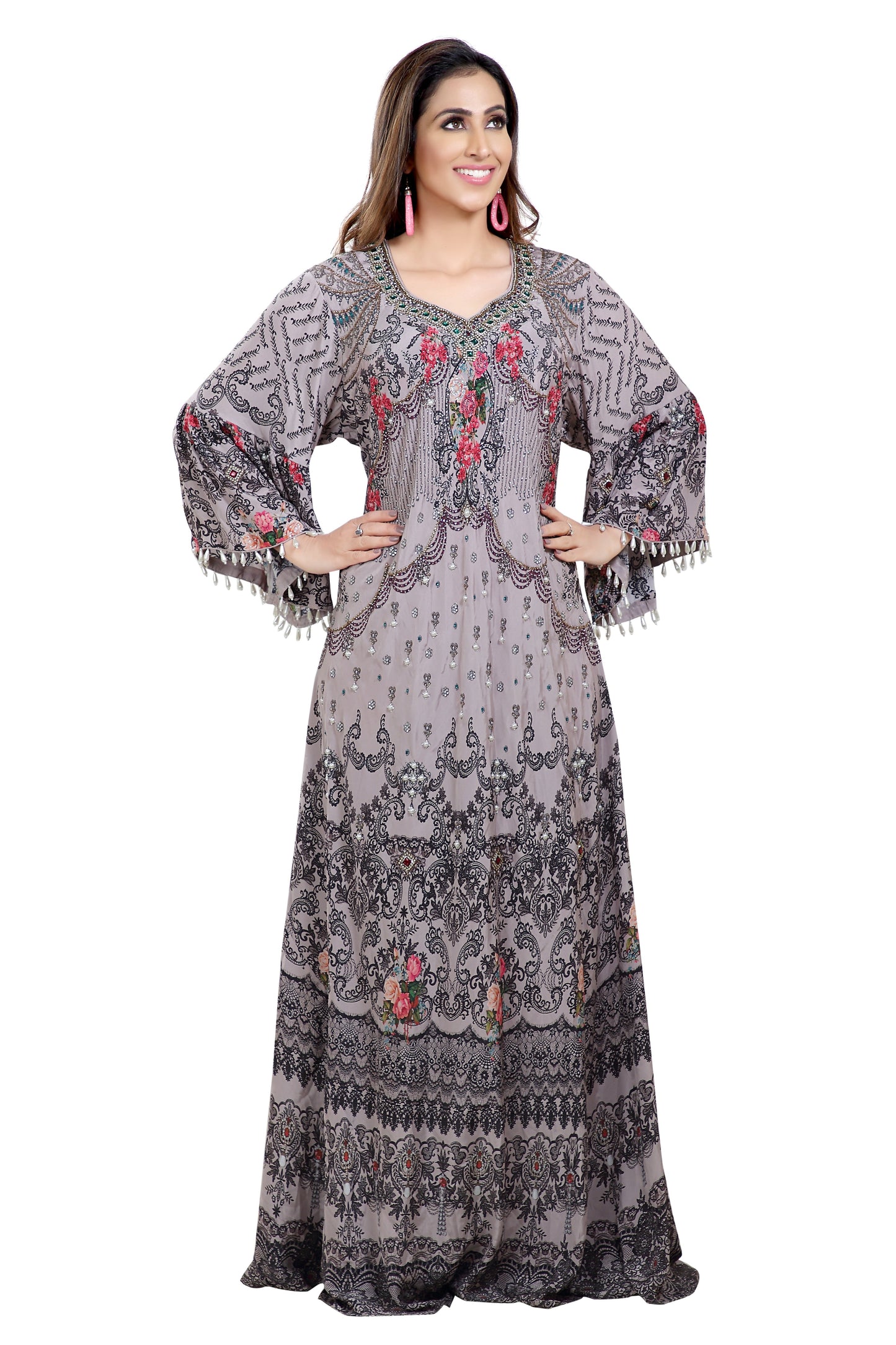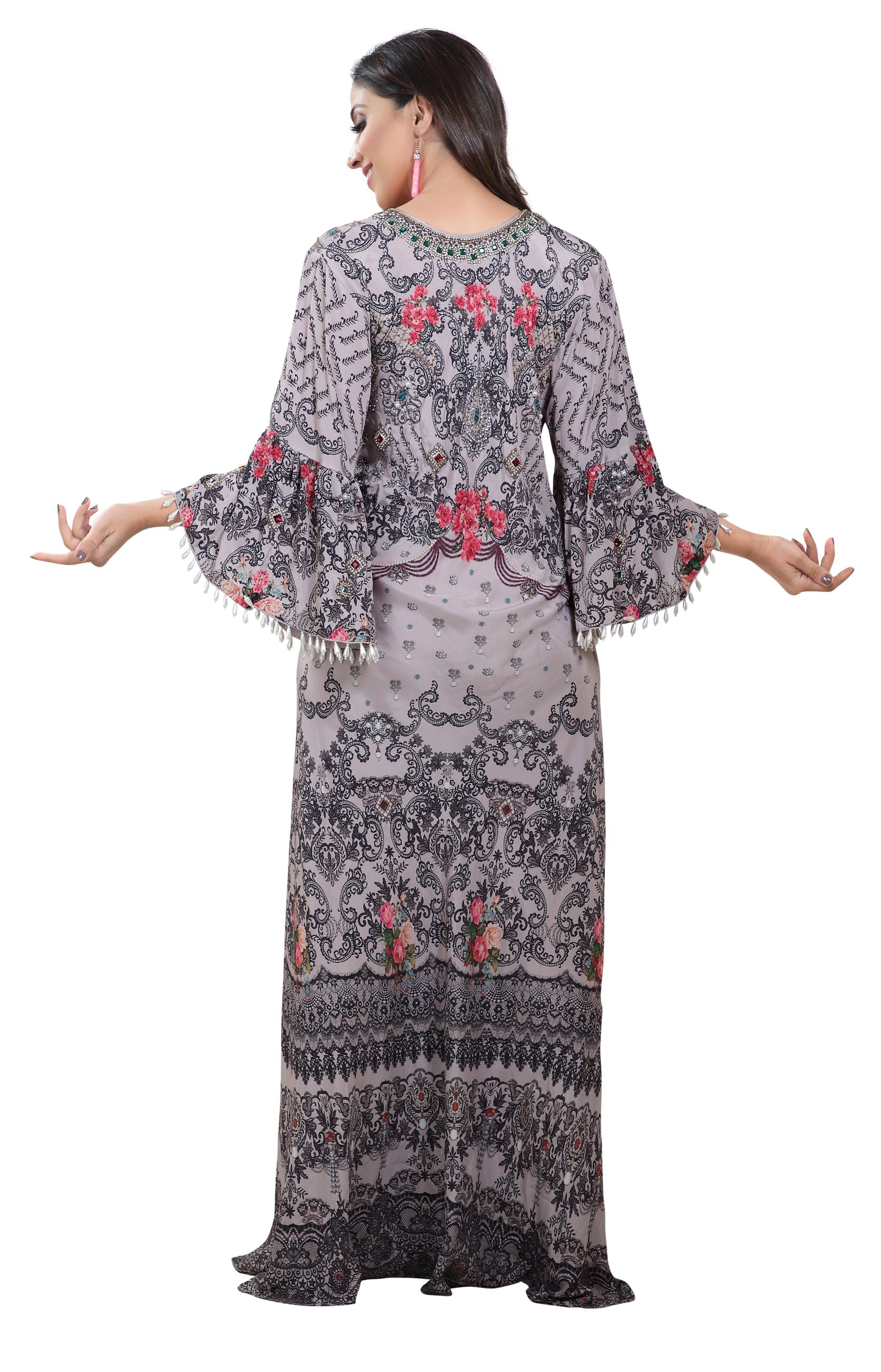 Floral Digital Printed Haute Coutre Kaftan Embroidery |