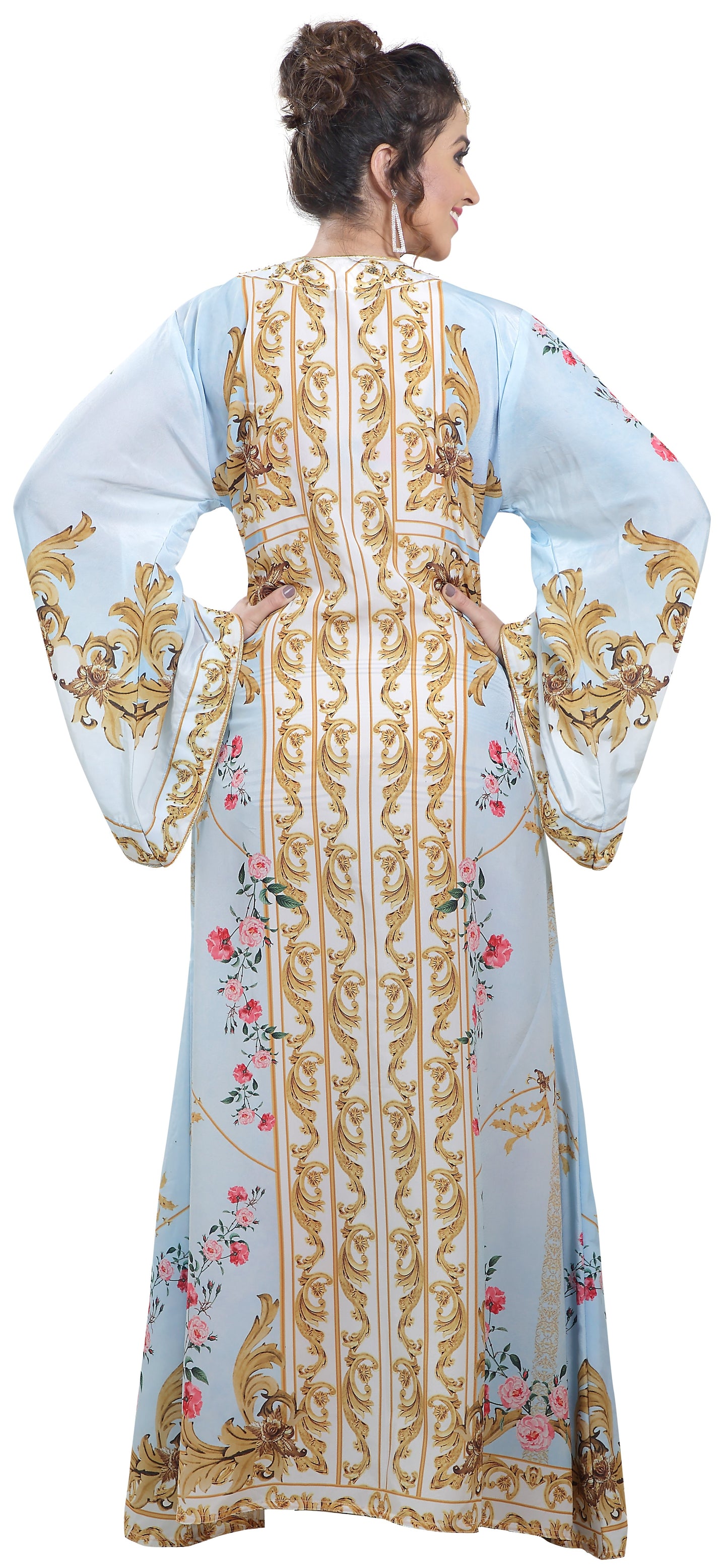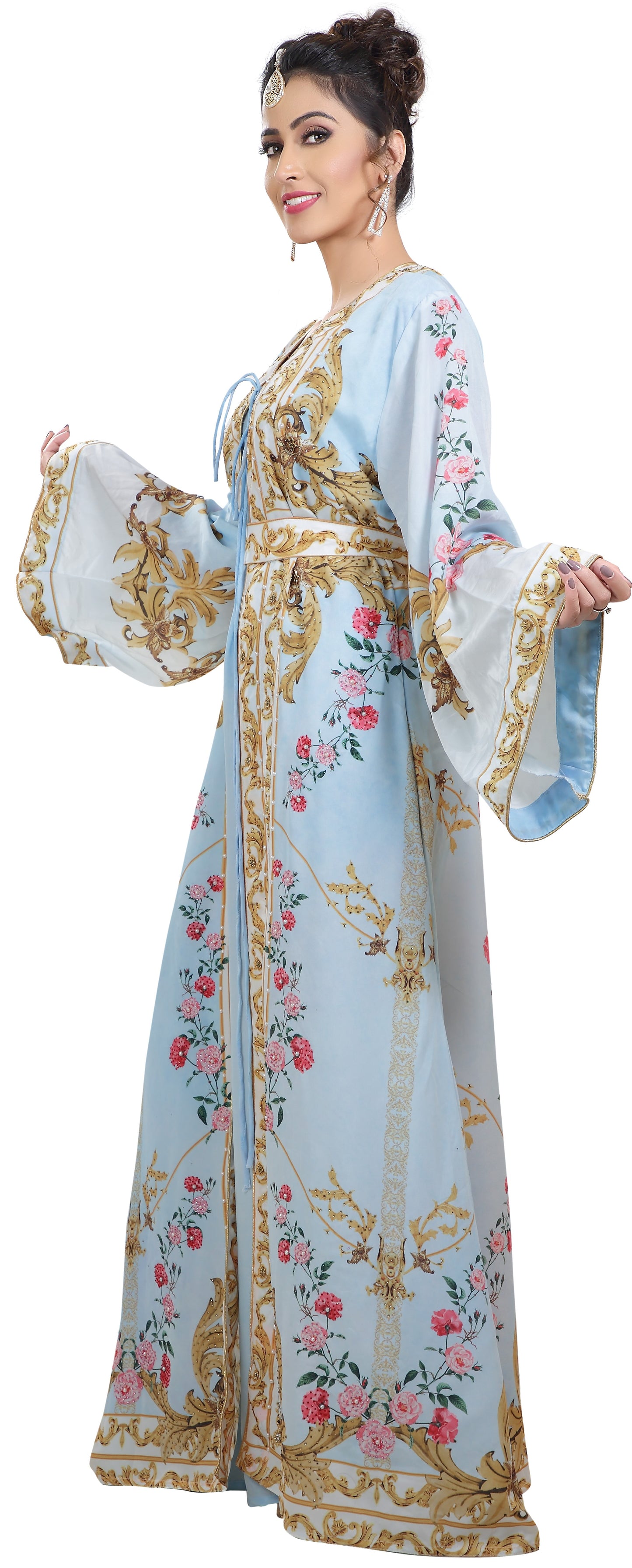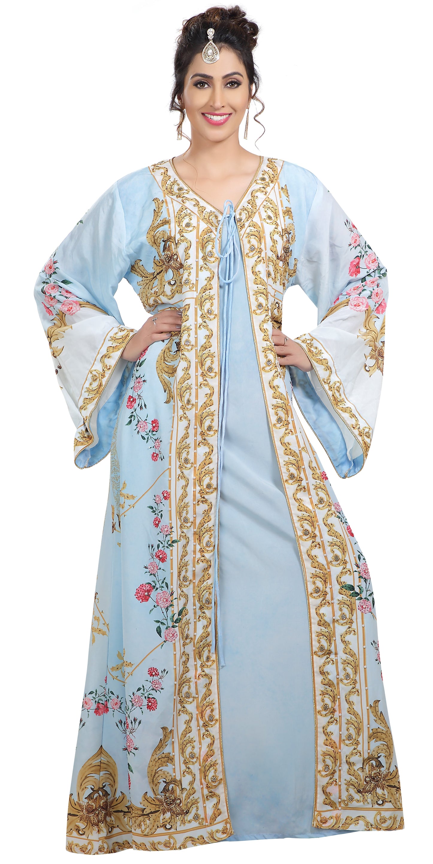 Floral Digital Printed Kaftan with Pearl Beads - Maxim Creation