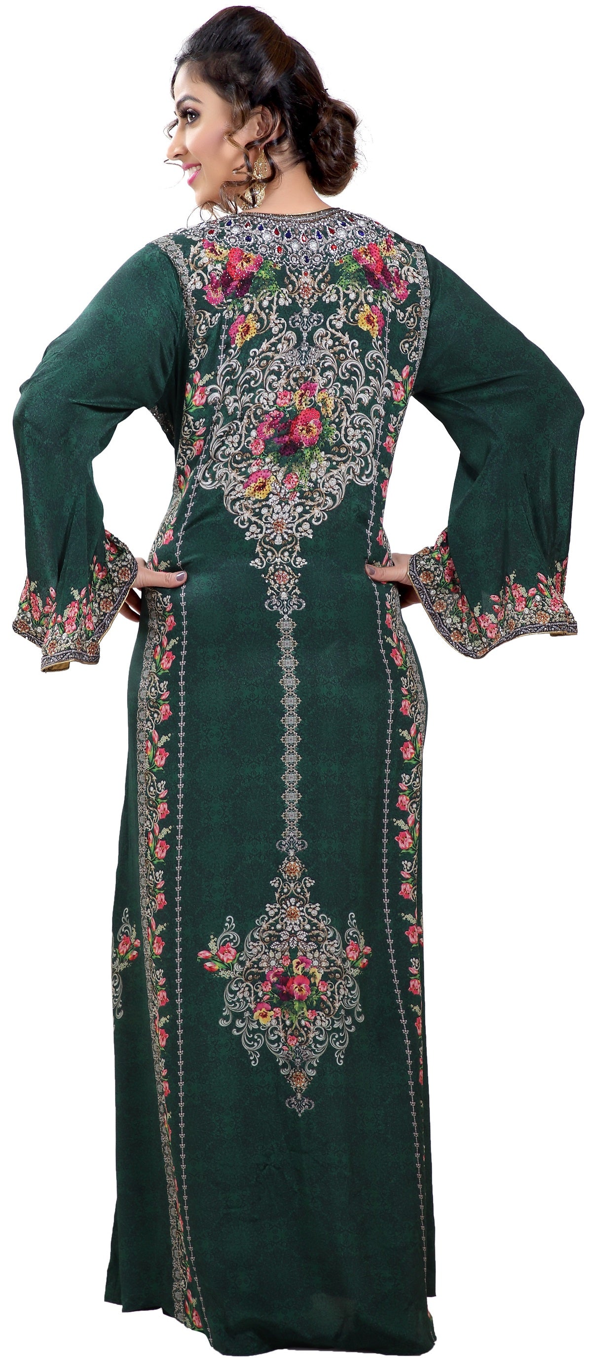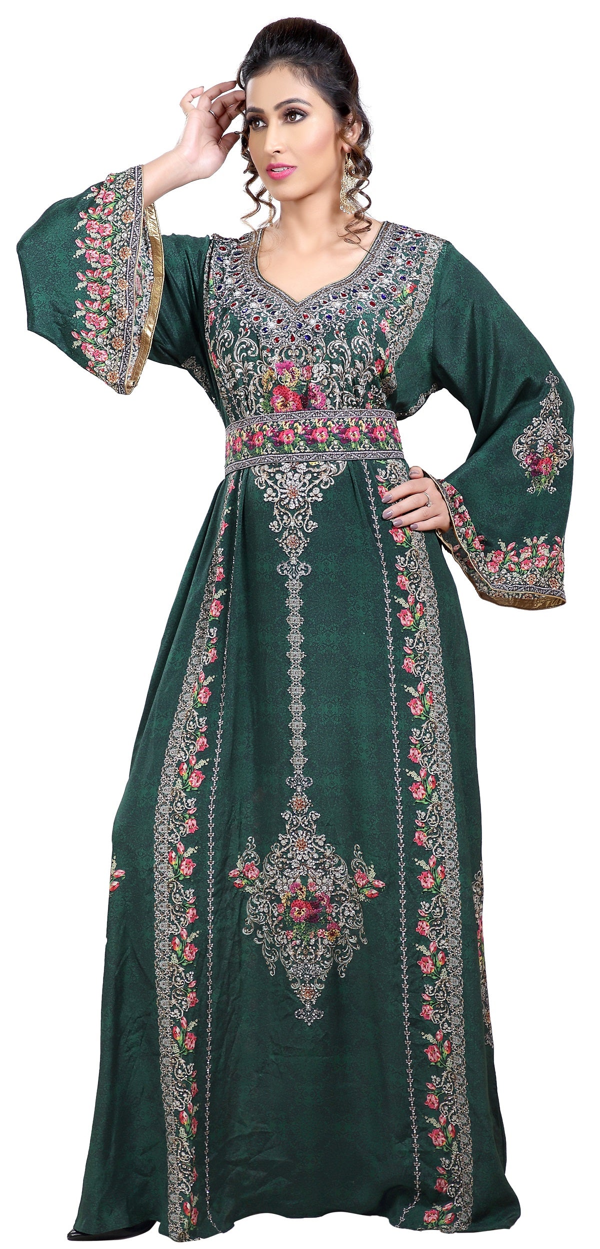Floral Printed Fabric Kaftan with Embroidered Belt - Maxim Creation