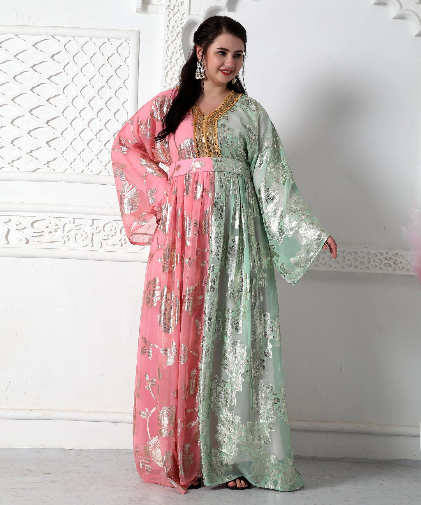 Designer-Wear Dual Tone Jalabiya Kaftan In Brasso |