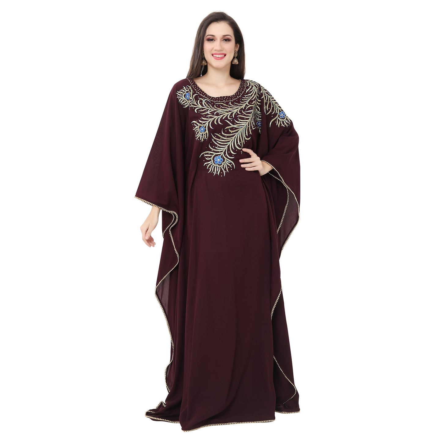 Dubai Farasha Long Robe with Peacock Feather Thread Embroidery
