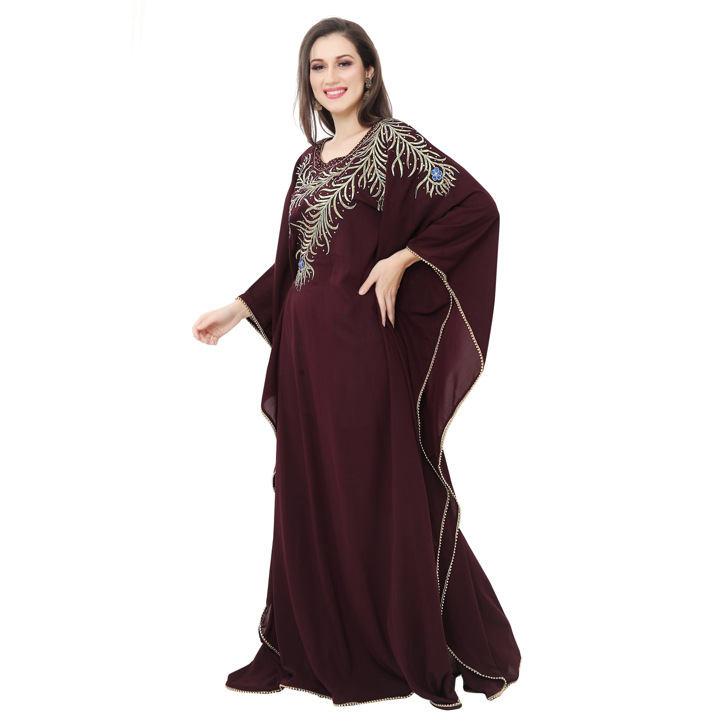 Dubai Farasha Long Robe with Peacock Feather Embroidery - Maxim Creation