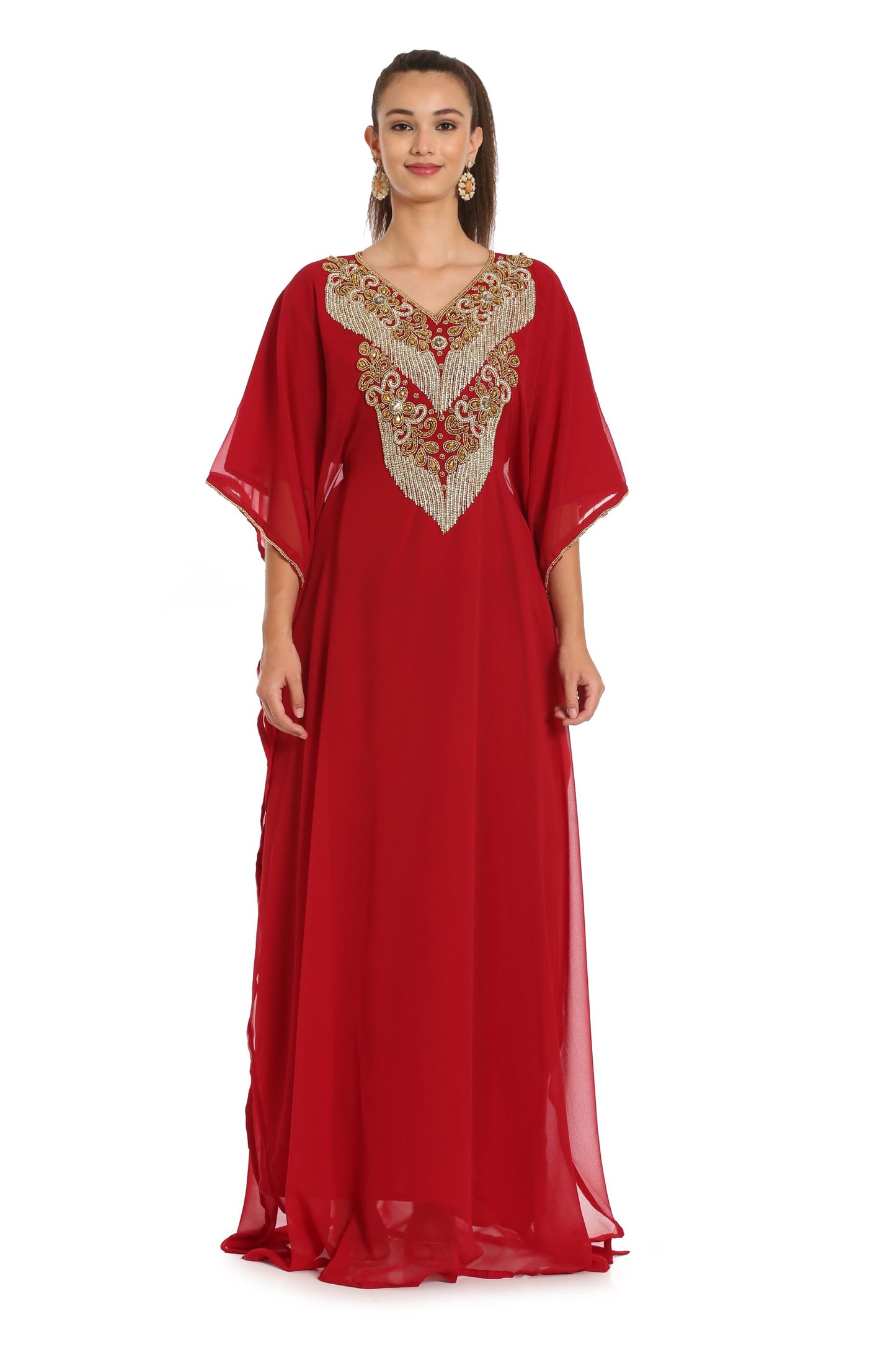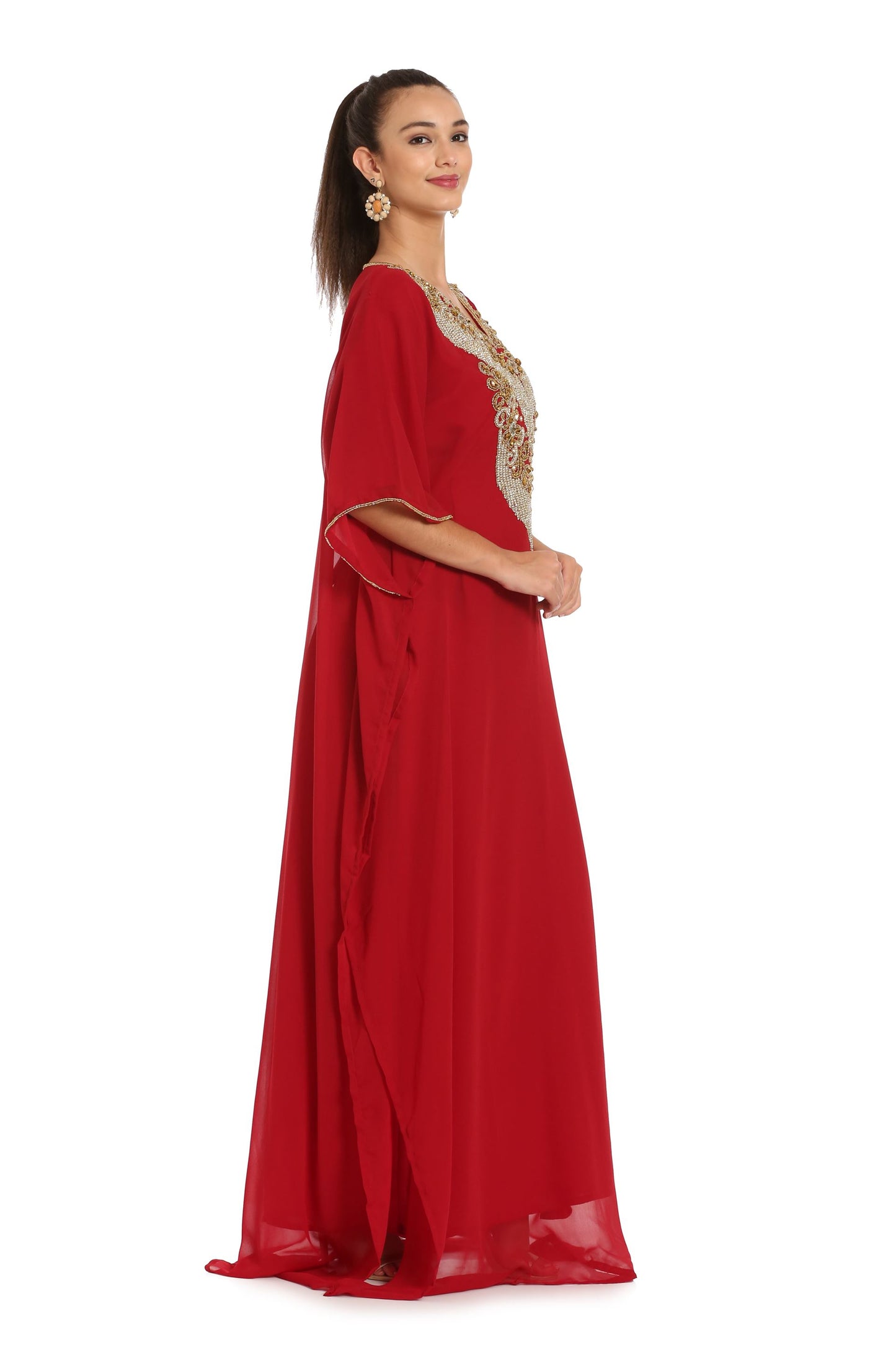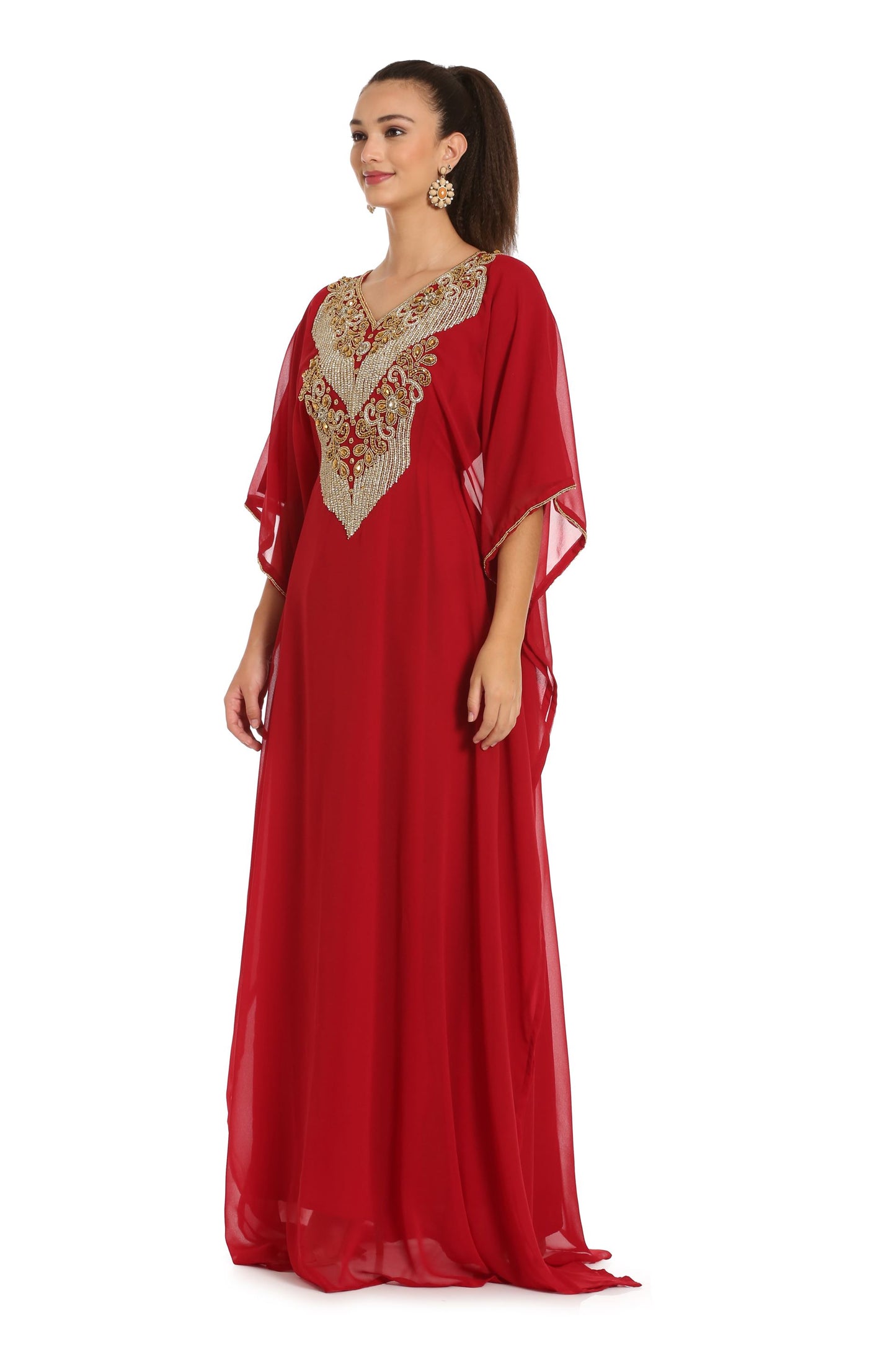 Hand Embroidery Kaftan in Red Georgette by Maxim Creation