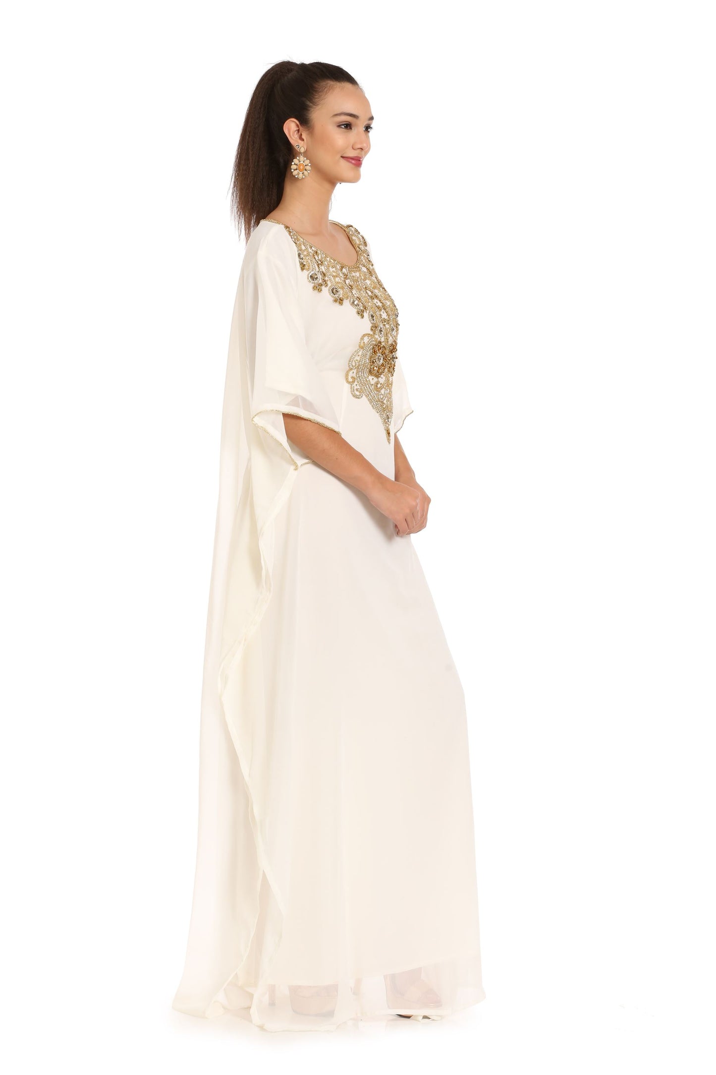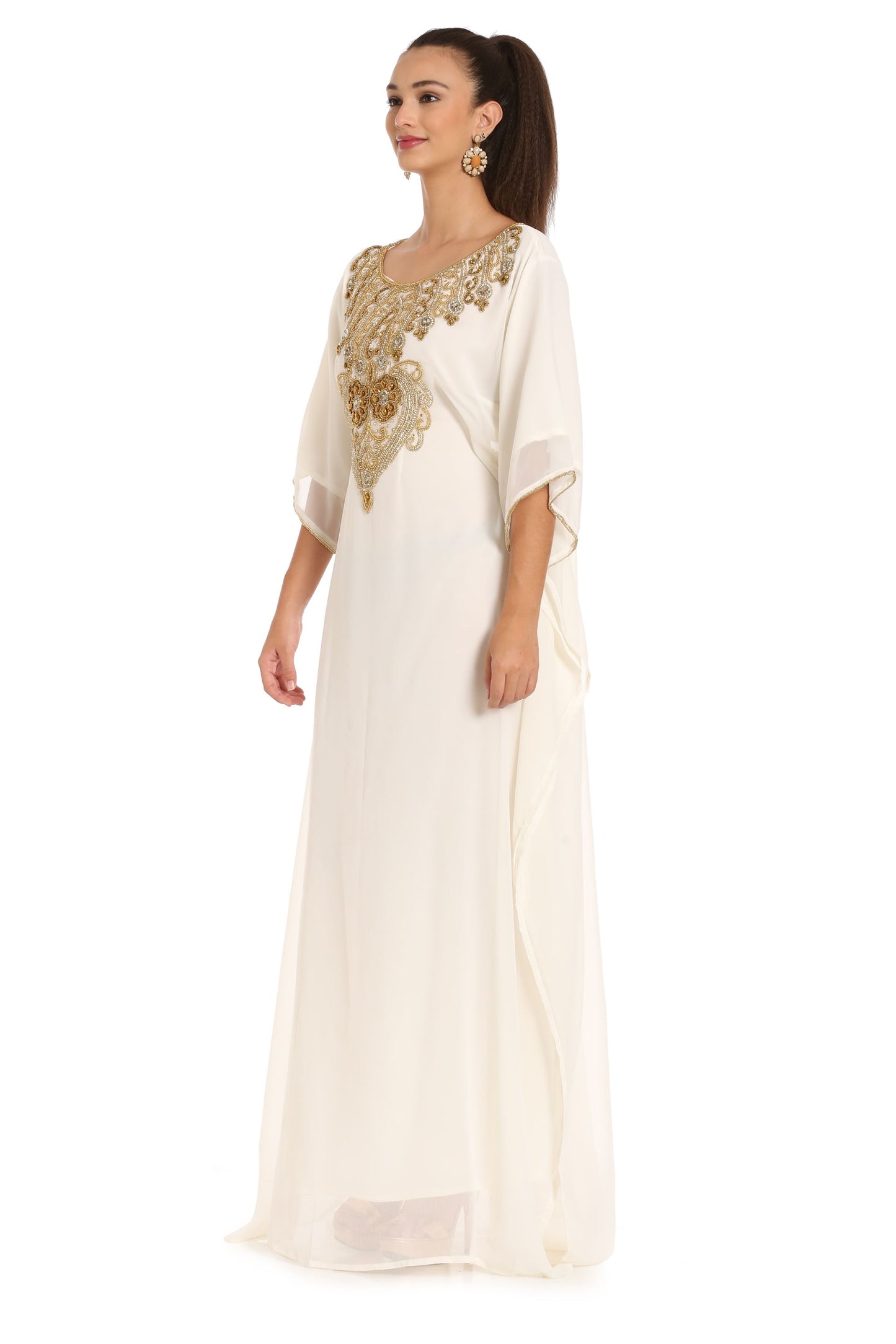 Long Tunic in Cream Farasha Evening Tea Party Dress - Maxim Creation