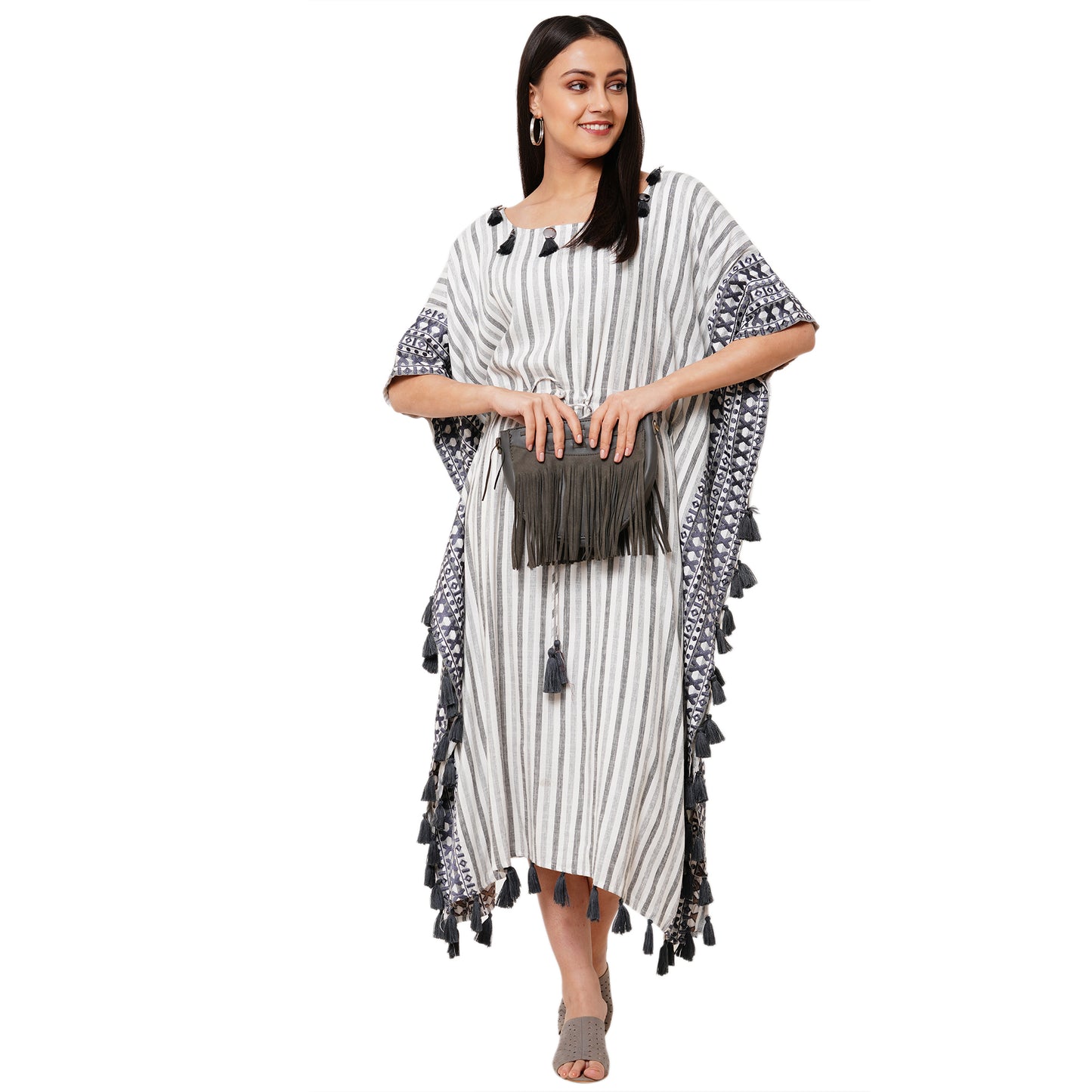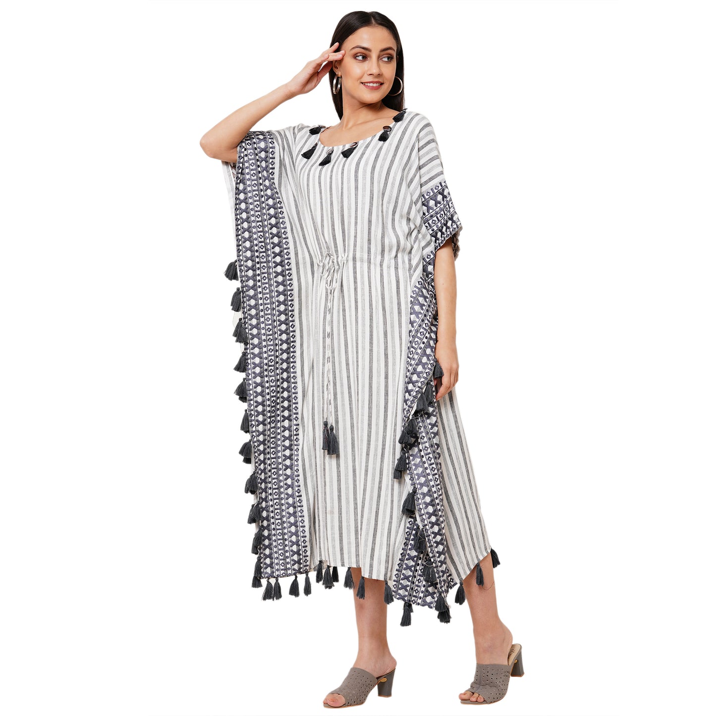 Striped Boho Caftan Beach Dress |