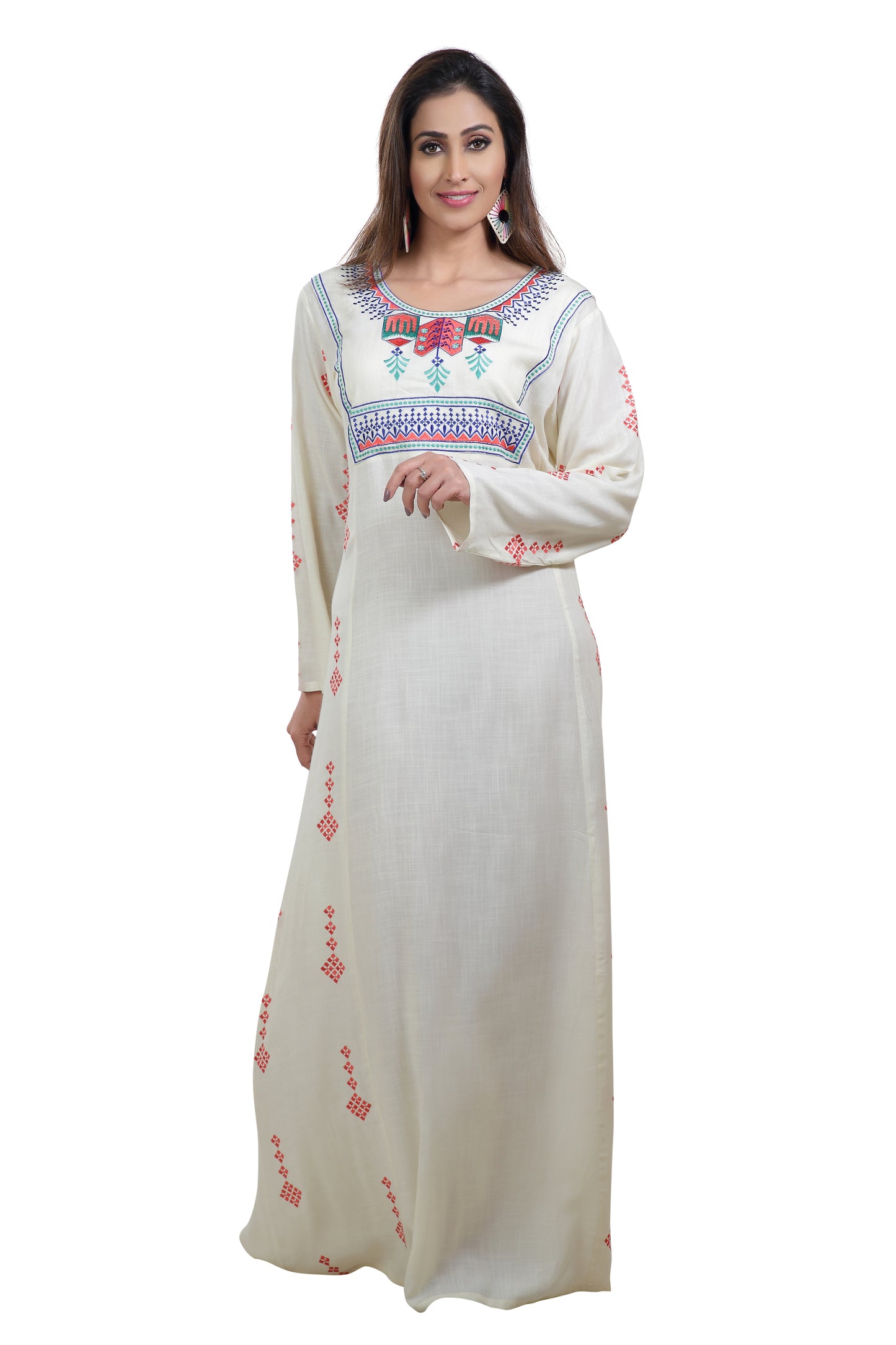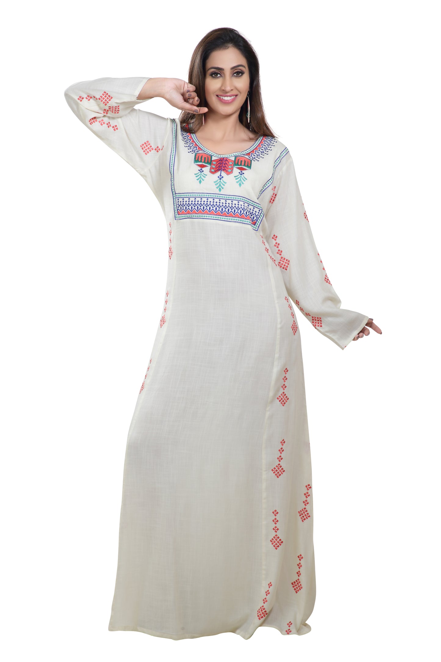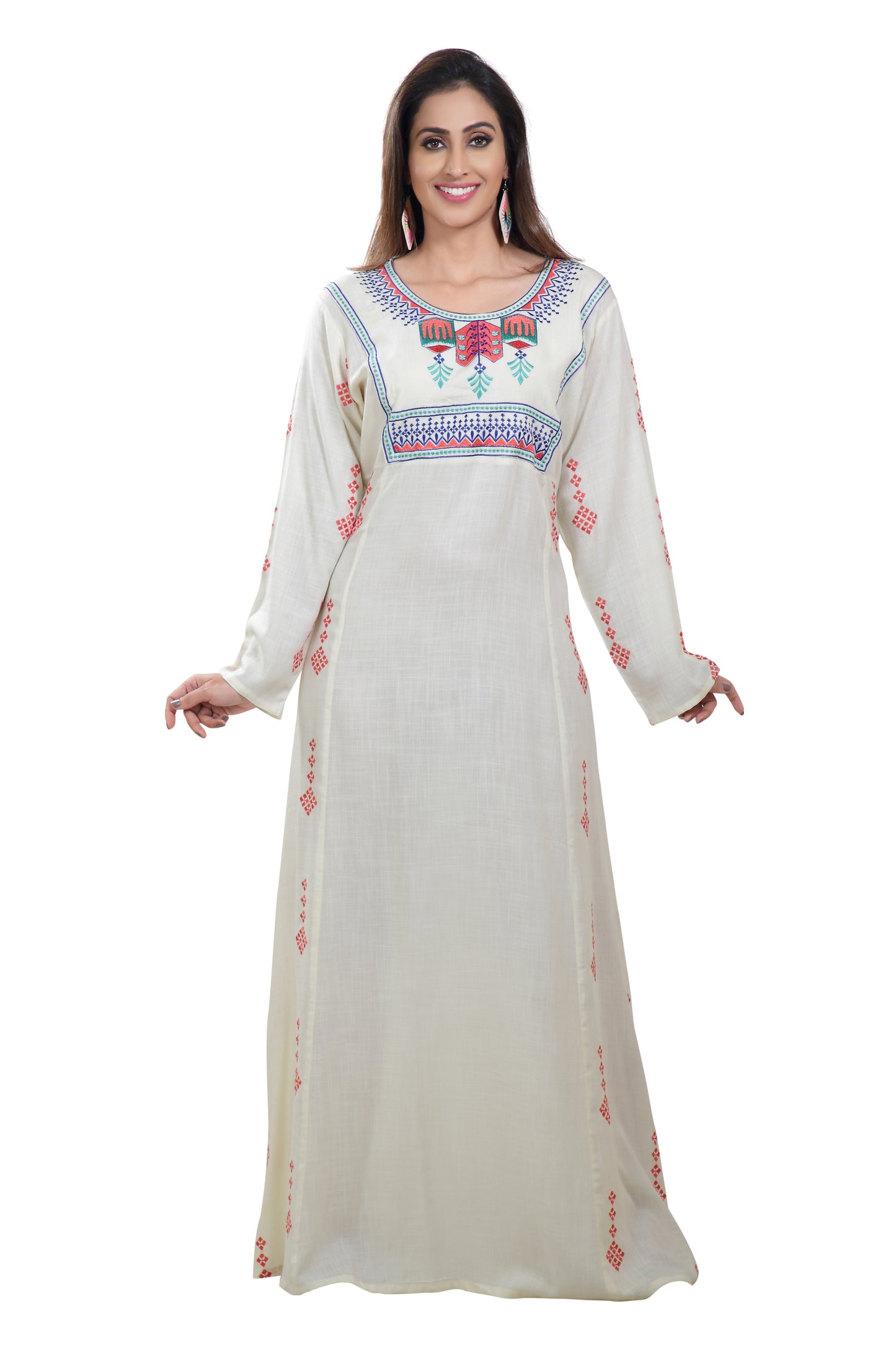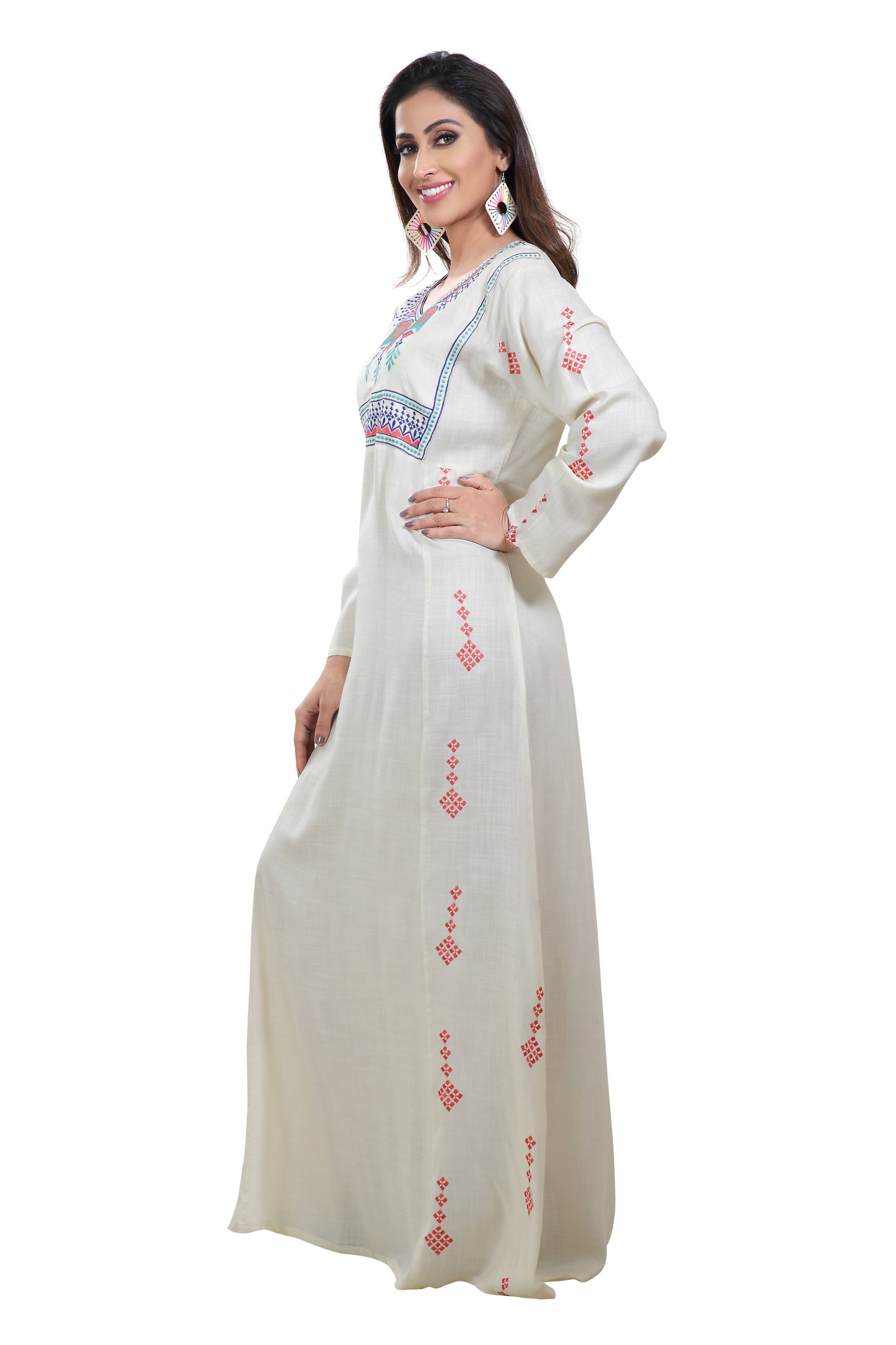 Boho Rayon Maxi Dress in Thread Embroidery |