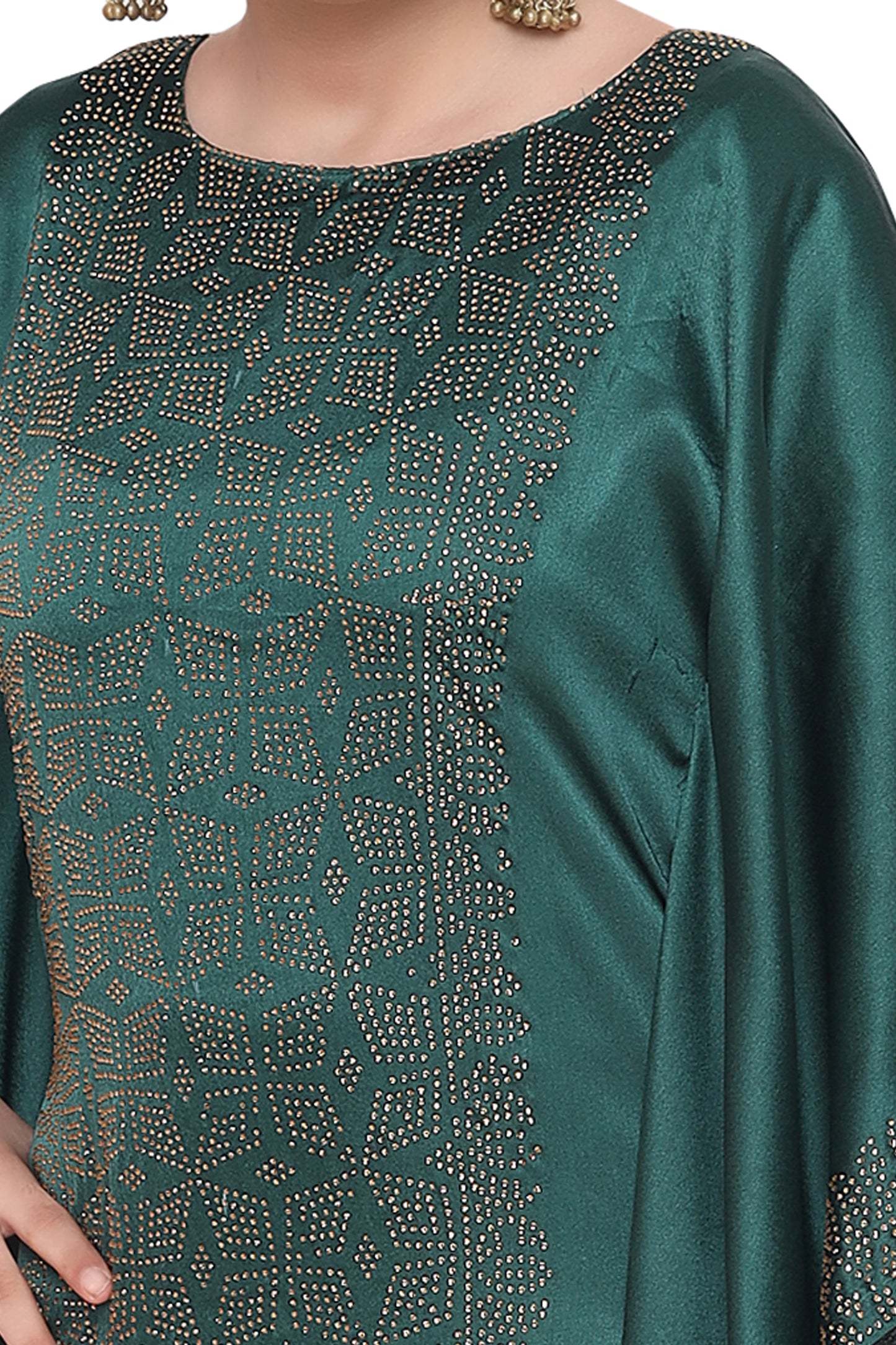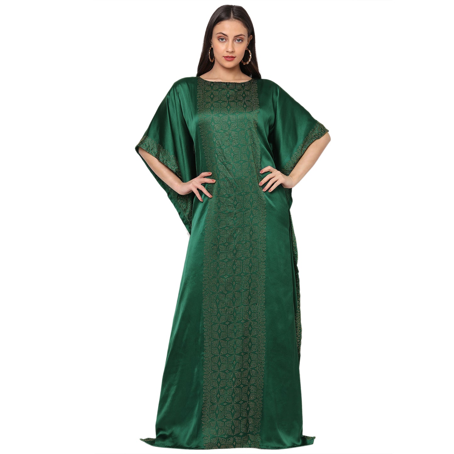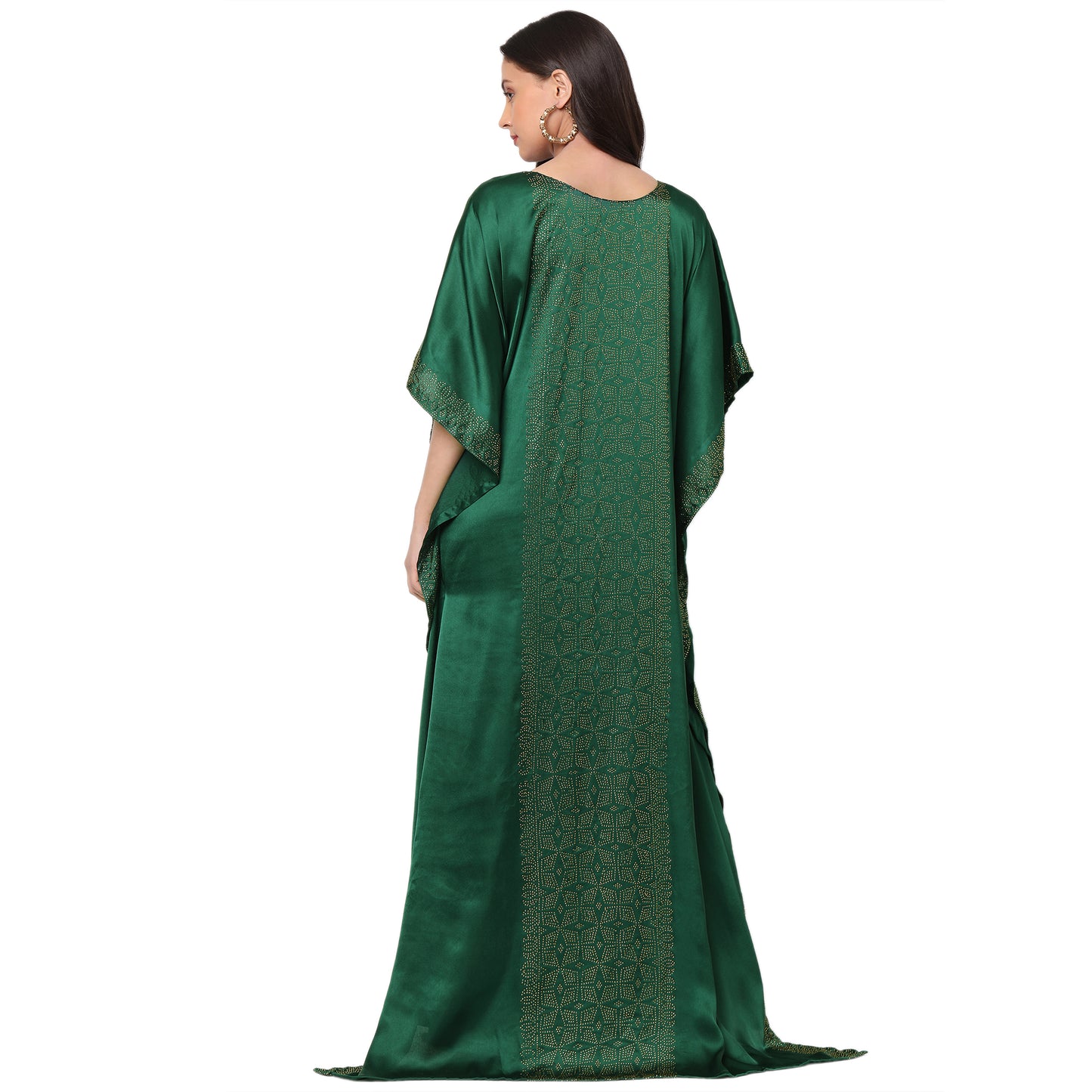 Resort Wear Bottle Green Satin Maxi - Maxim Creation
