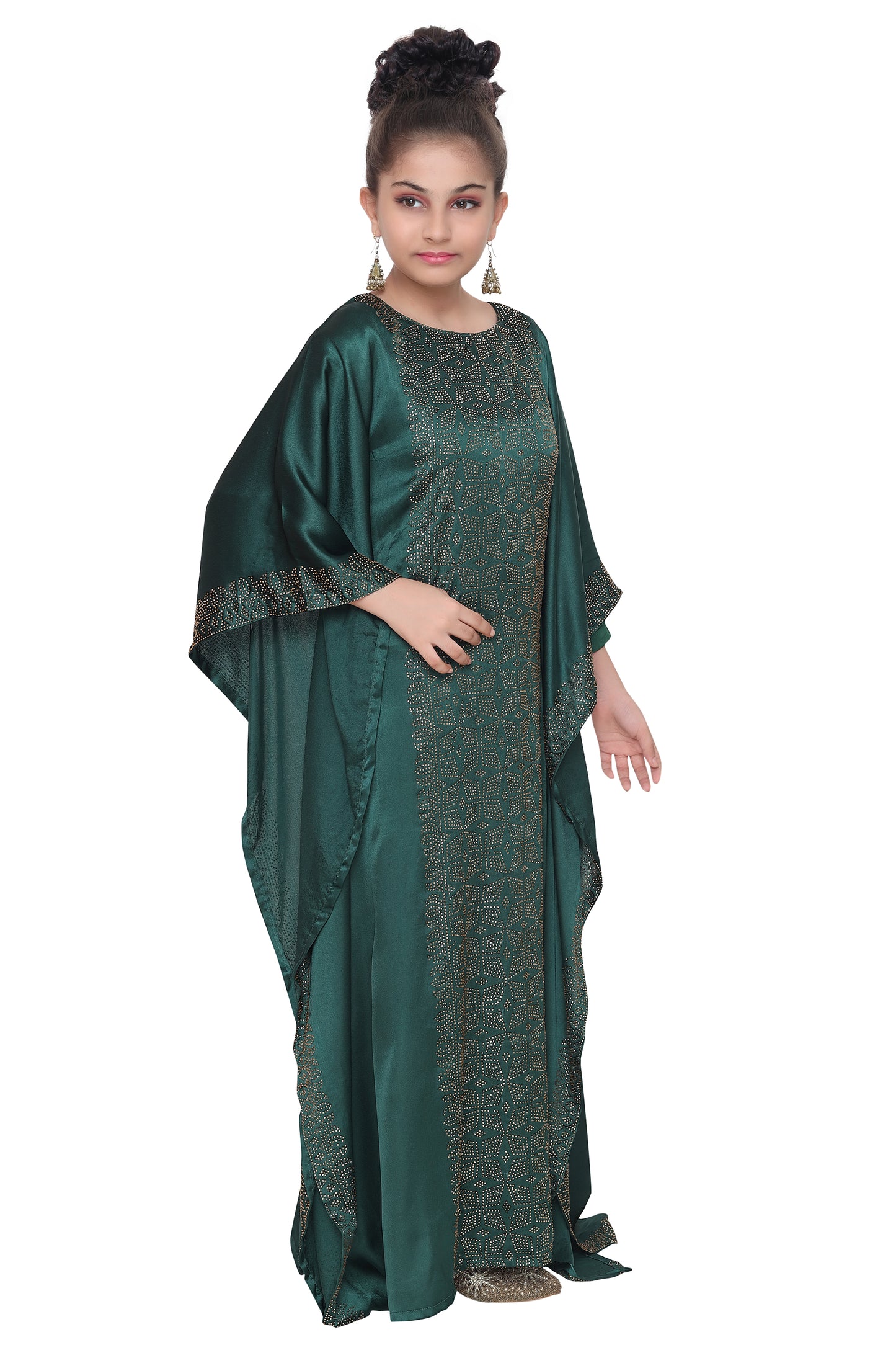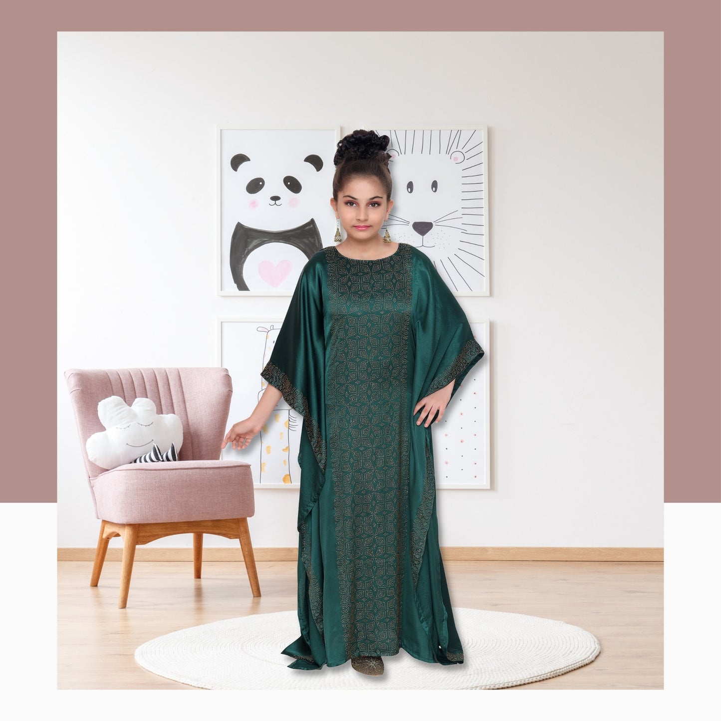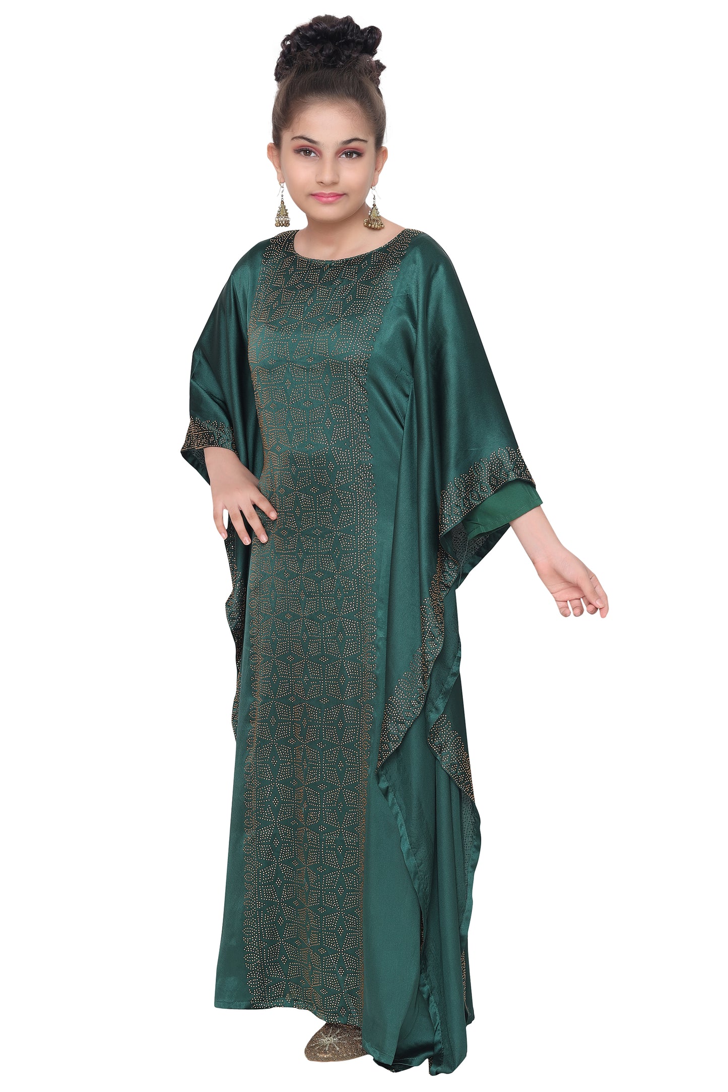 Resort Wear Bottle Green Satin Maxi - Maxim Creation