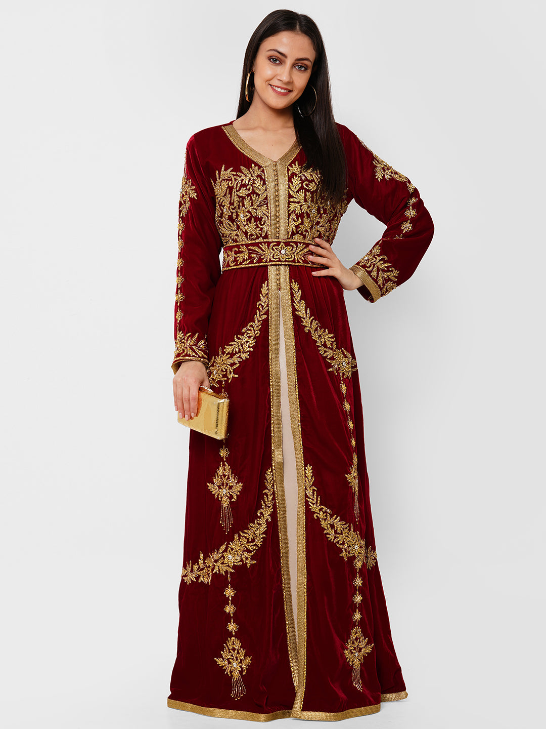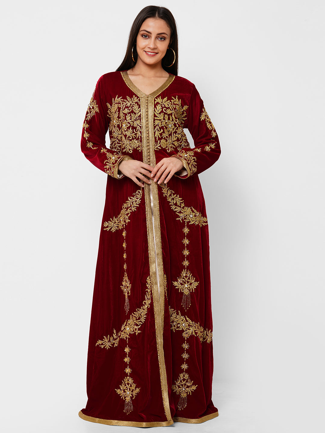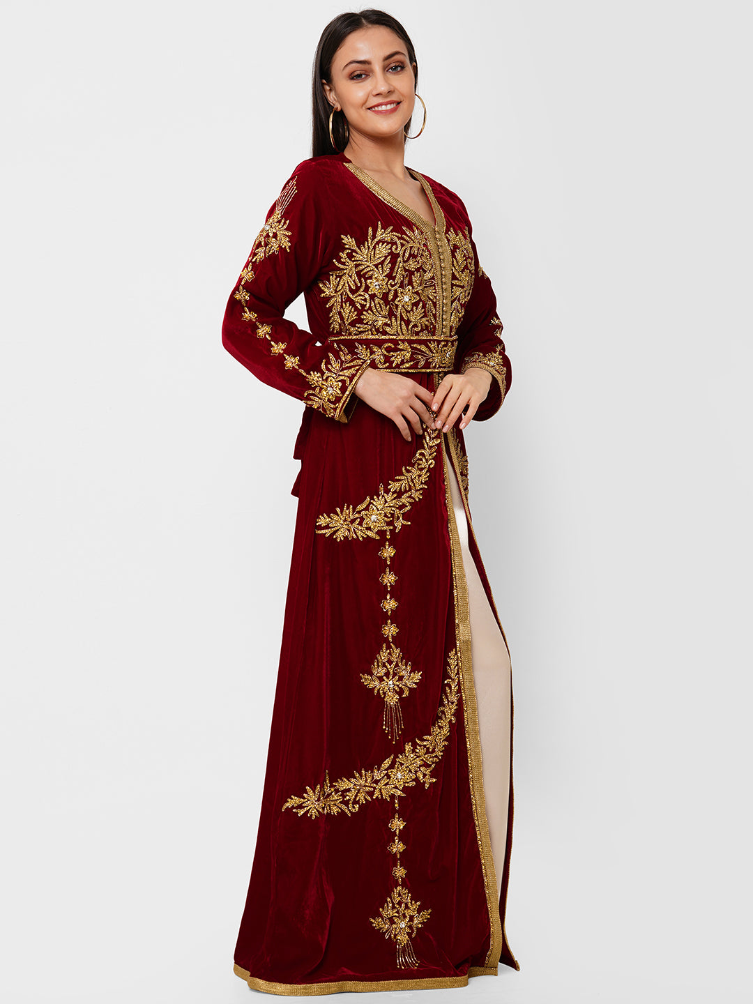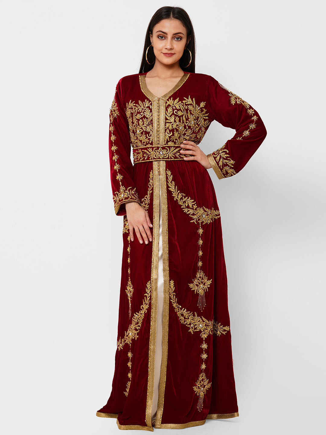 Modern Velvet Kaftan Evening Party Gown - Maxim Creation