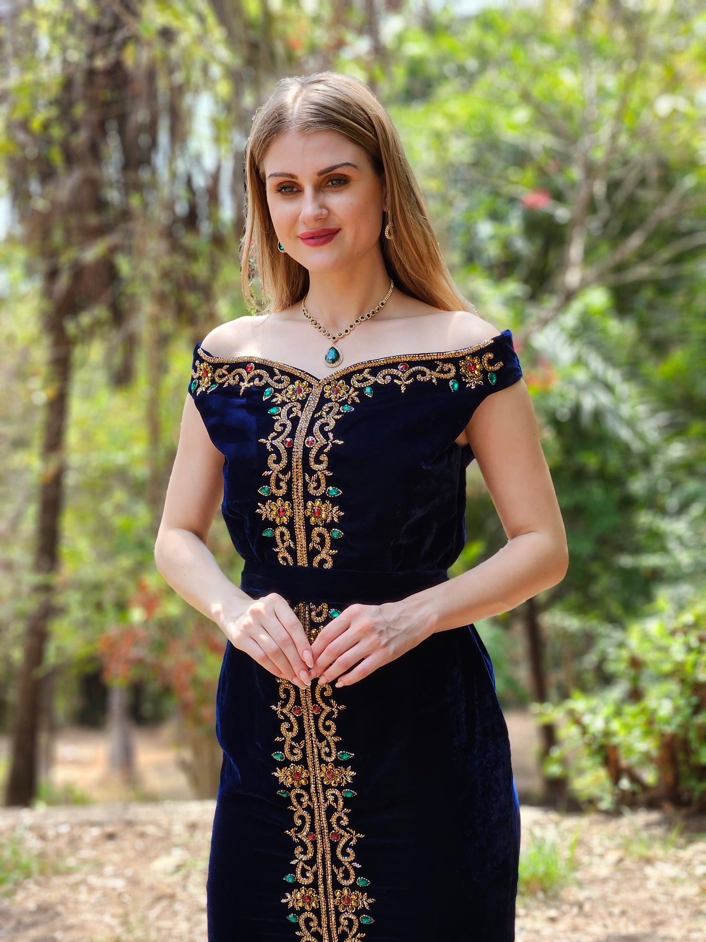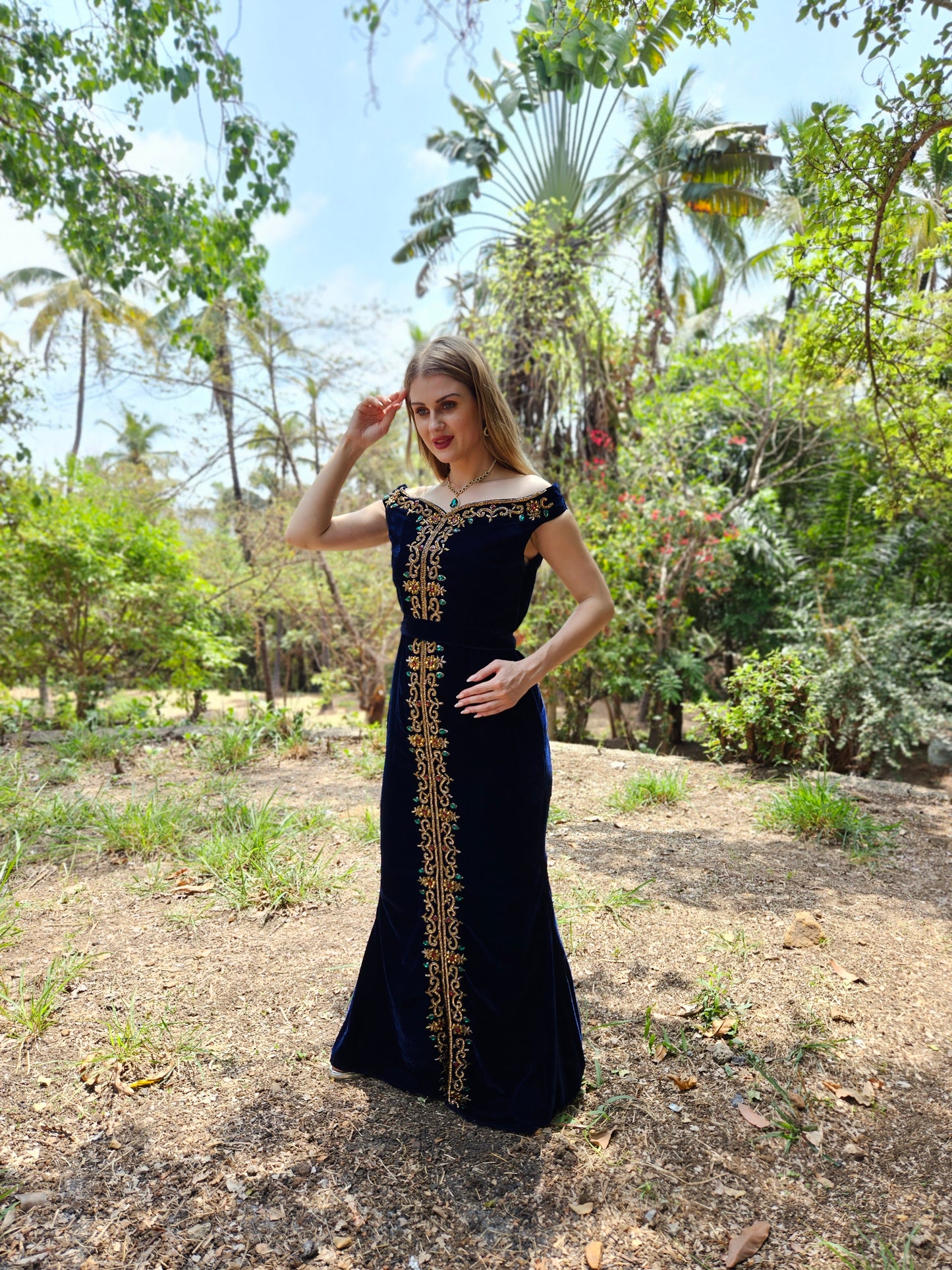 Arabian Gown In Velvet Embroidered Maxi Dress