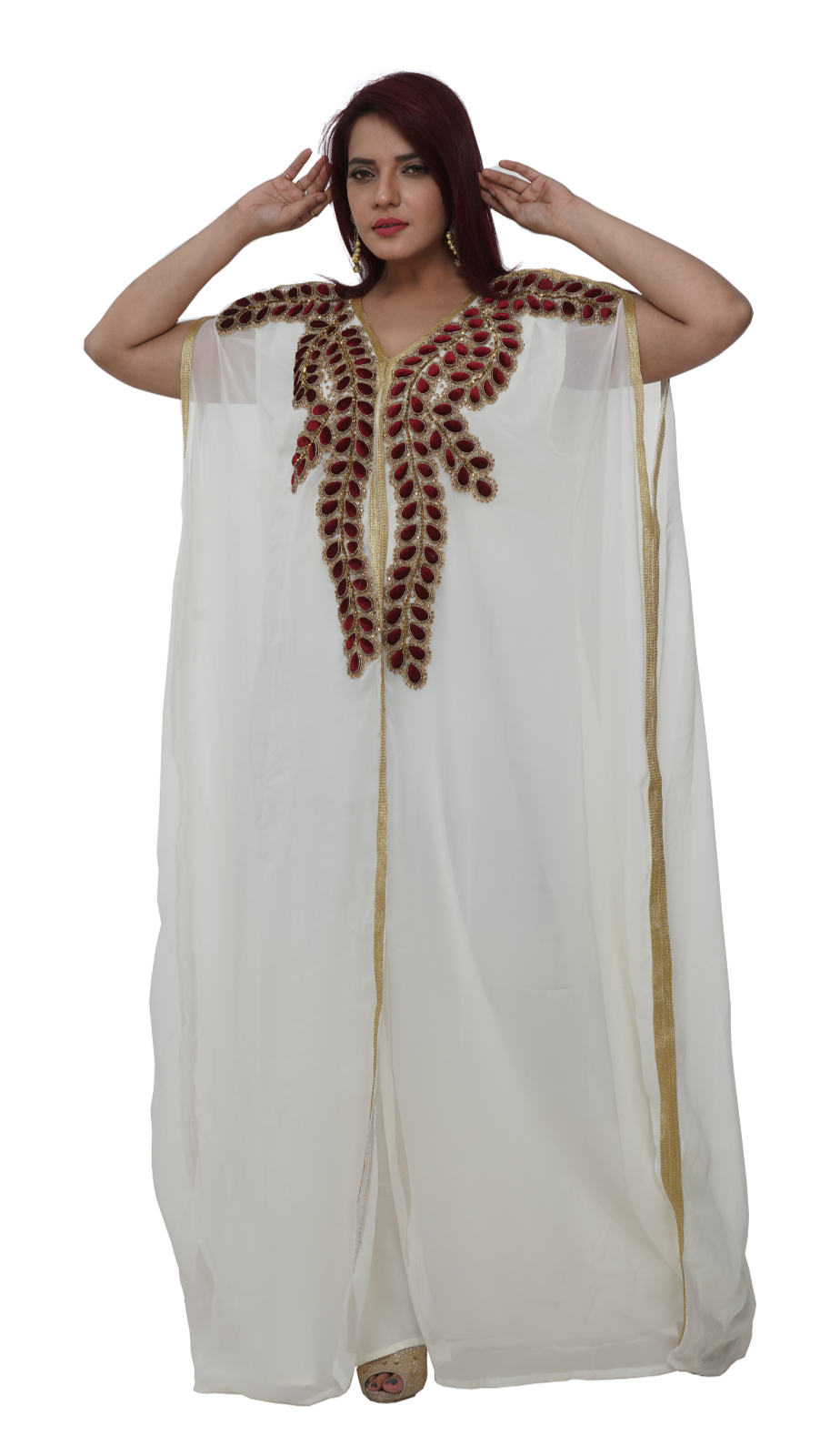Charm your appearance with this evening party dress in White. V – Neck Style with Sleeveless will give an admirable look and make you the showstopper. Perfect for your event with this Red Teardrop Shaped Embroidered Velvet Beads. This Dress comes as a 1 piece set. |