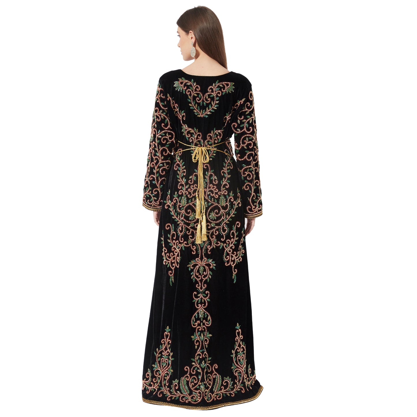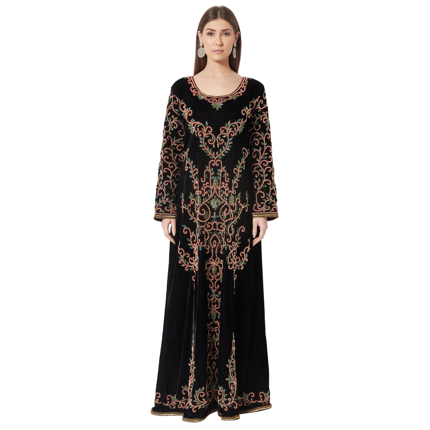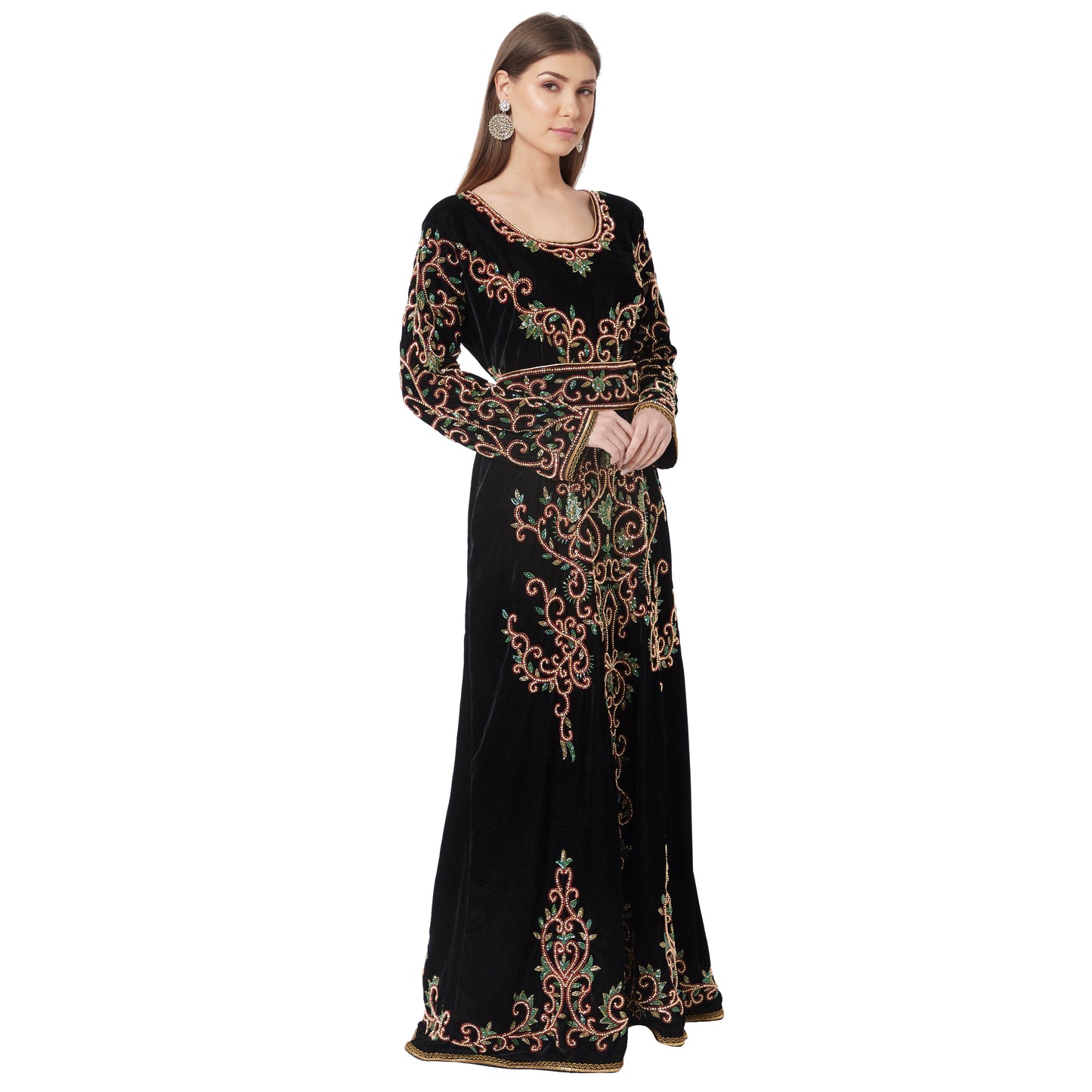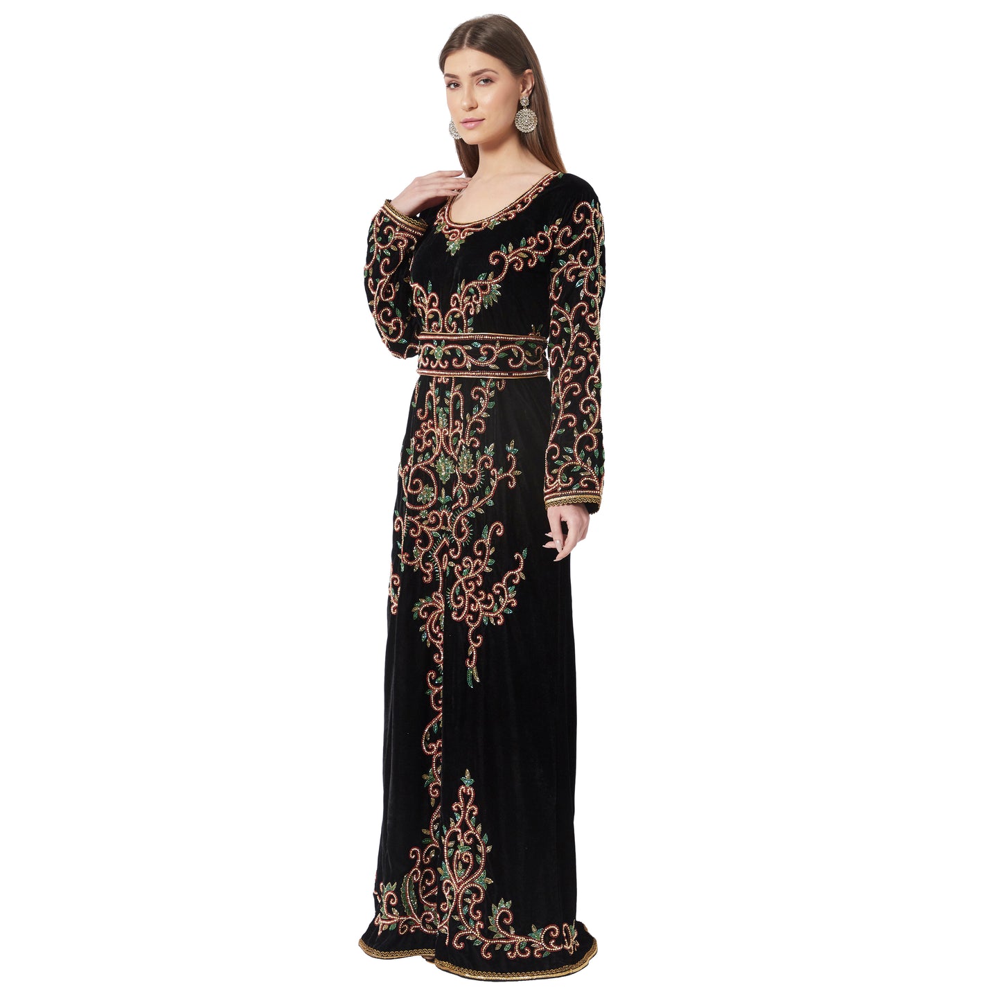 Crystal Hand Work & Beads Kaftan Velvet Maxi Dress