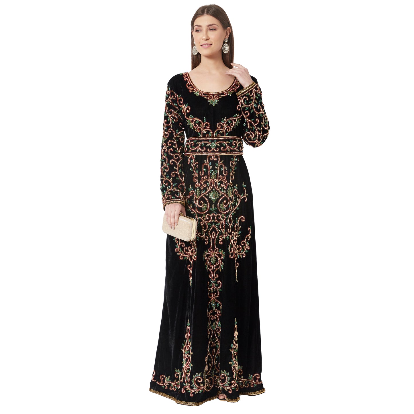 Crystal Hand Work & Beads Kaftan Velvet Maxi Dress - Maxim Creation
