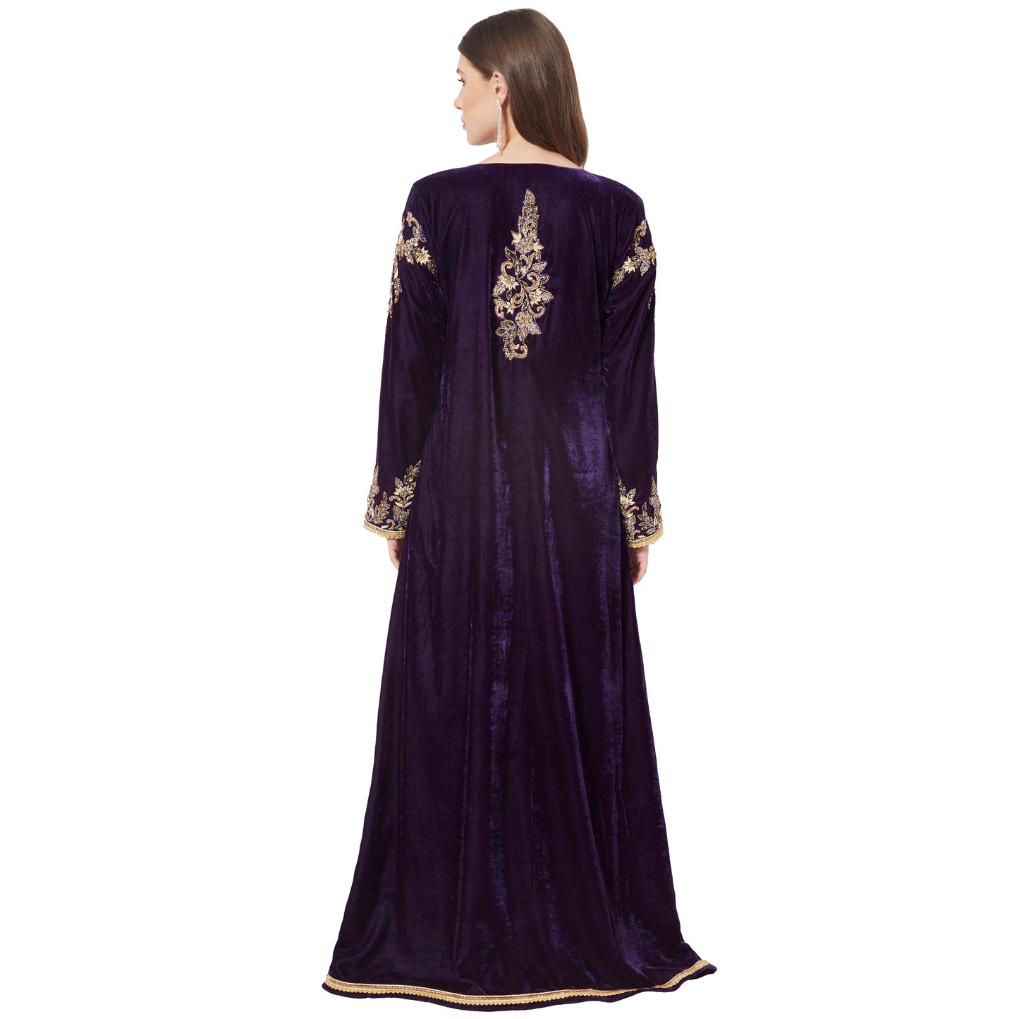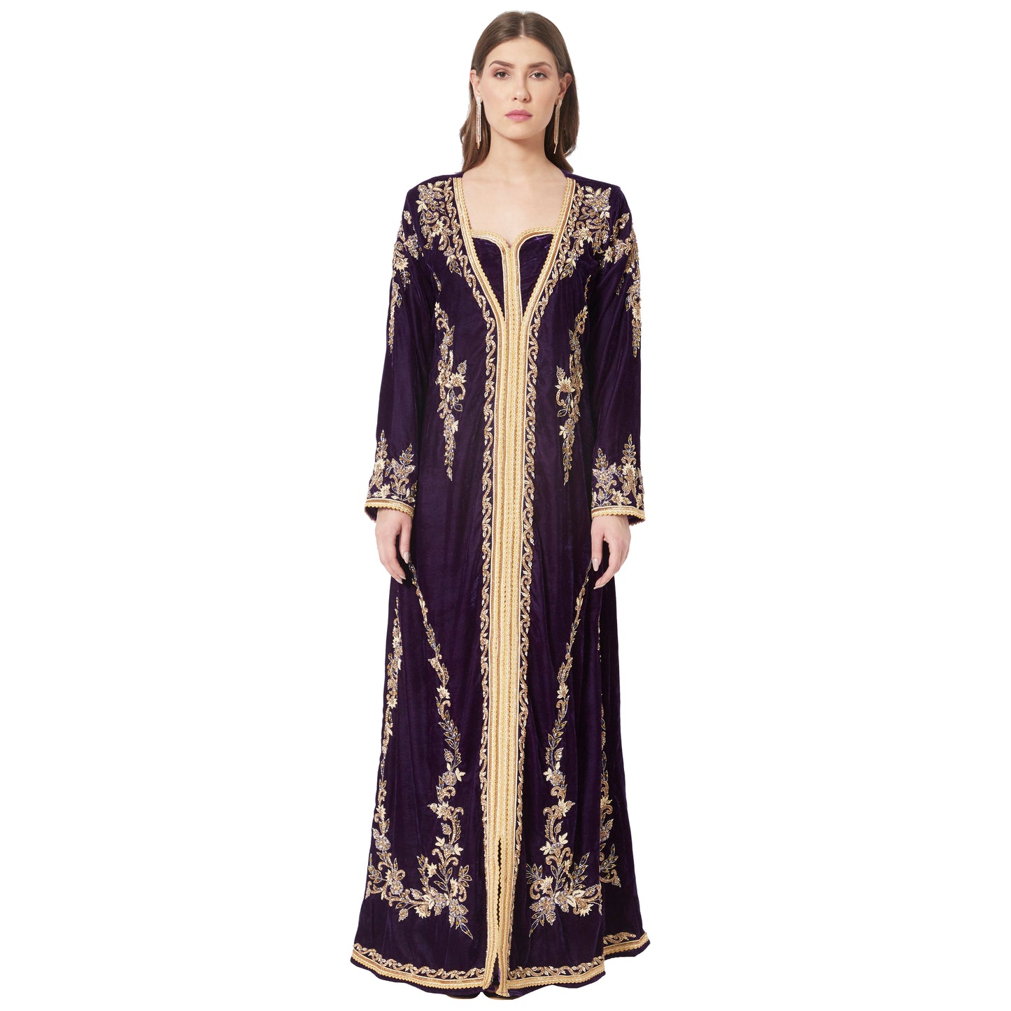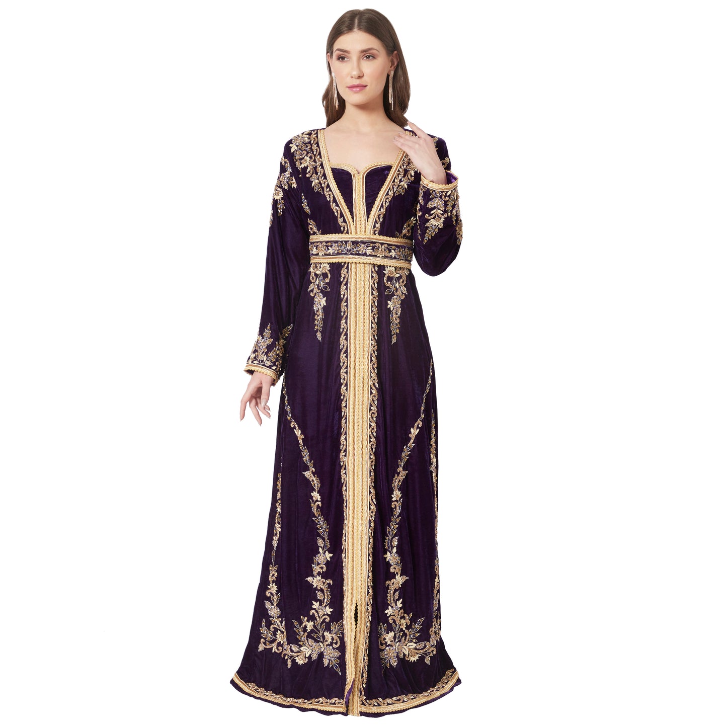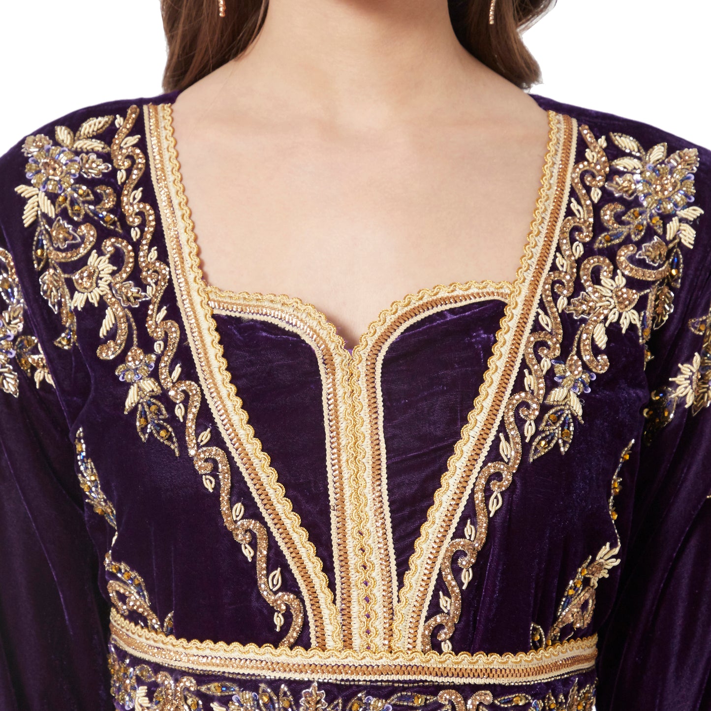 Designer Takchita Caftan Purple Velvet Wedding Gown - Maxim Creation