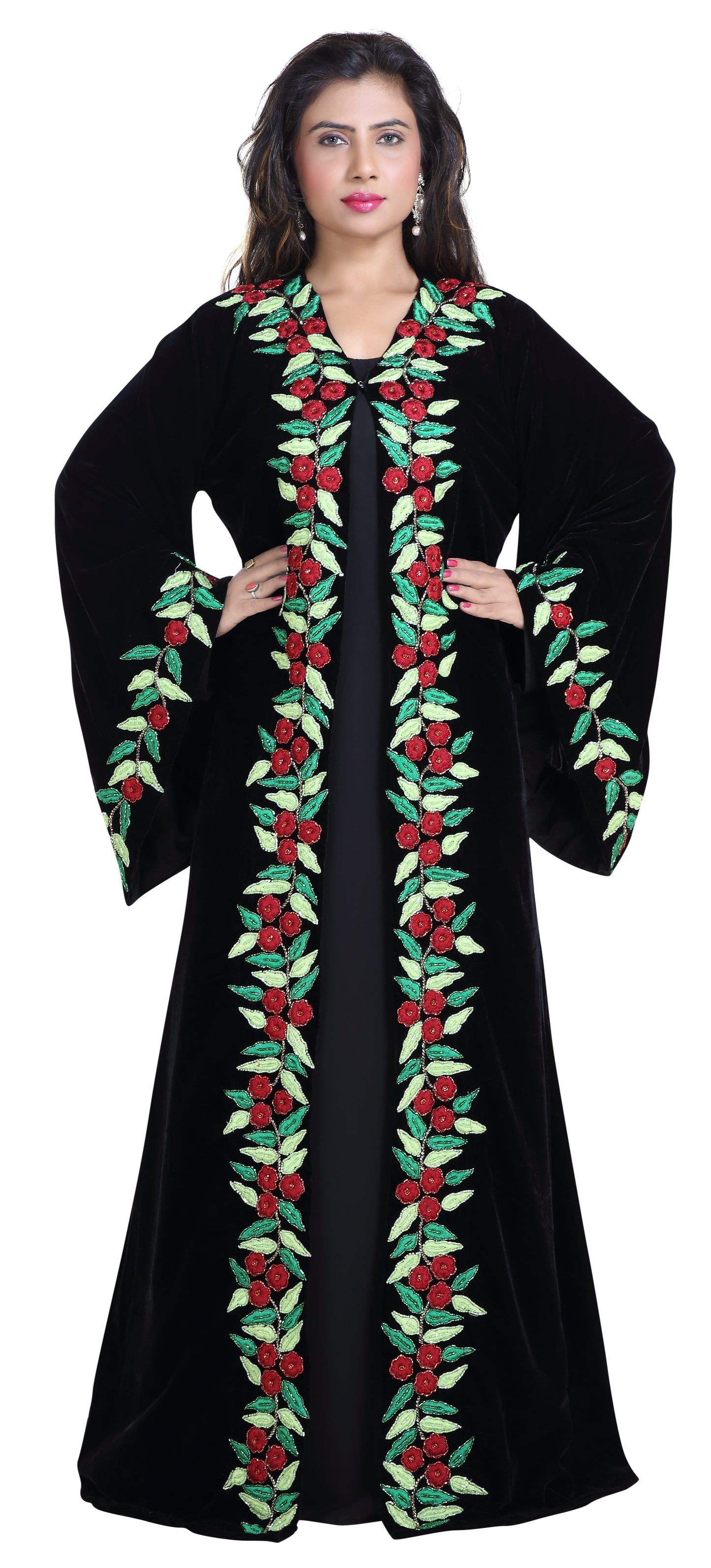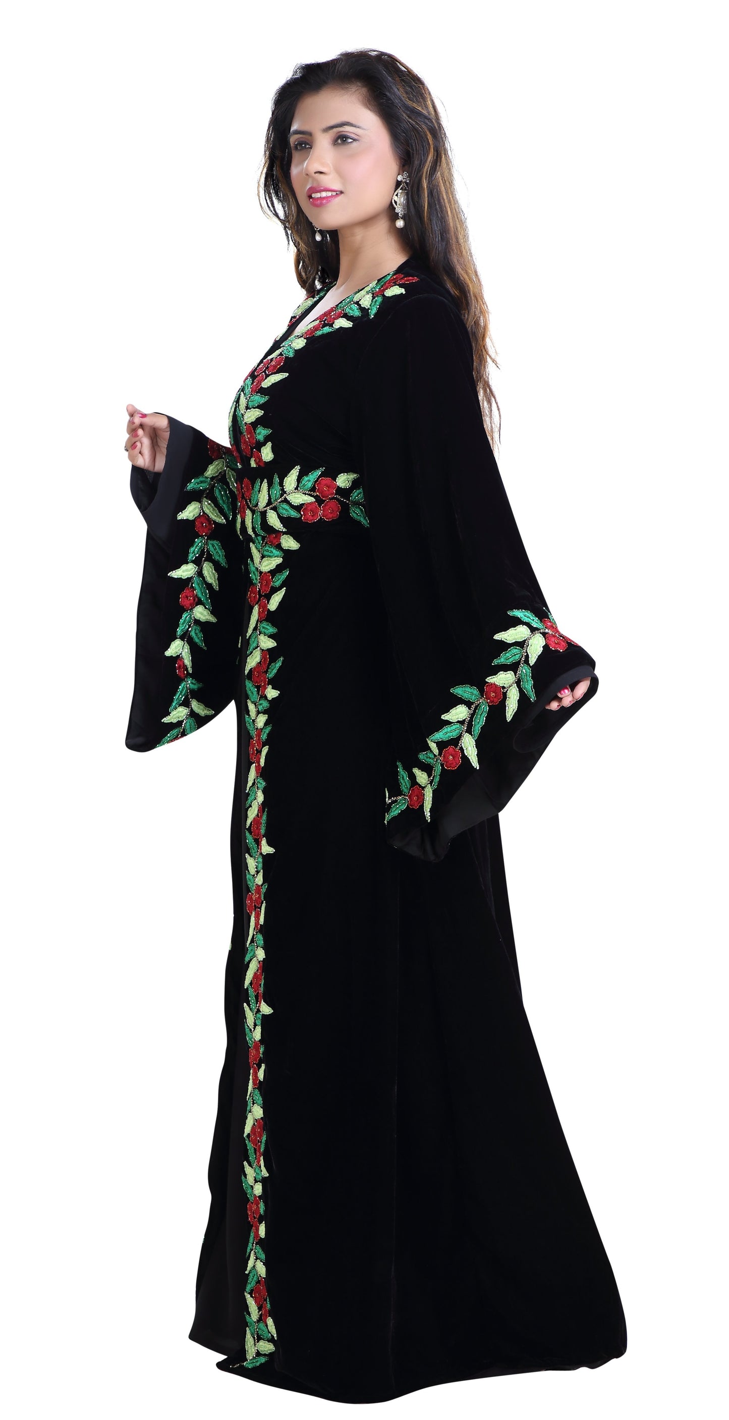 Modern Kaftan Floral Machine Embroidered Jellabiya Gown |