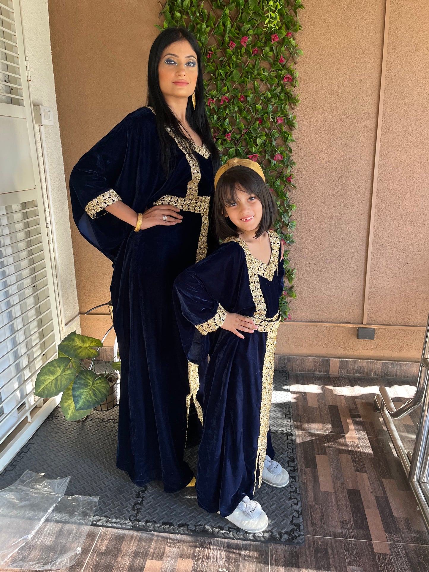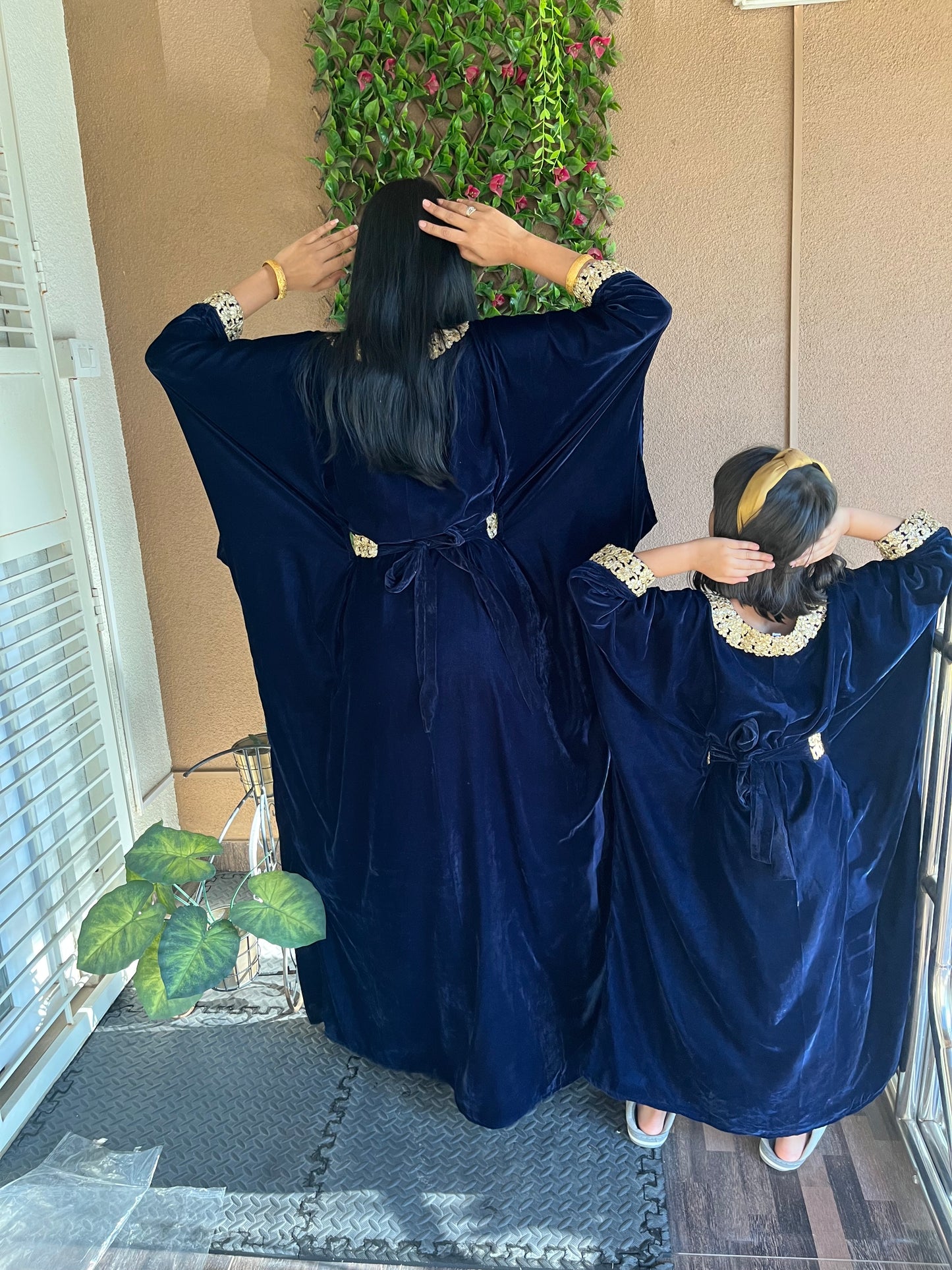 Velvet Jalabiya Kaftan Gown in Mother & Daughter Combo Set