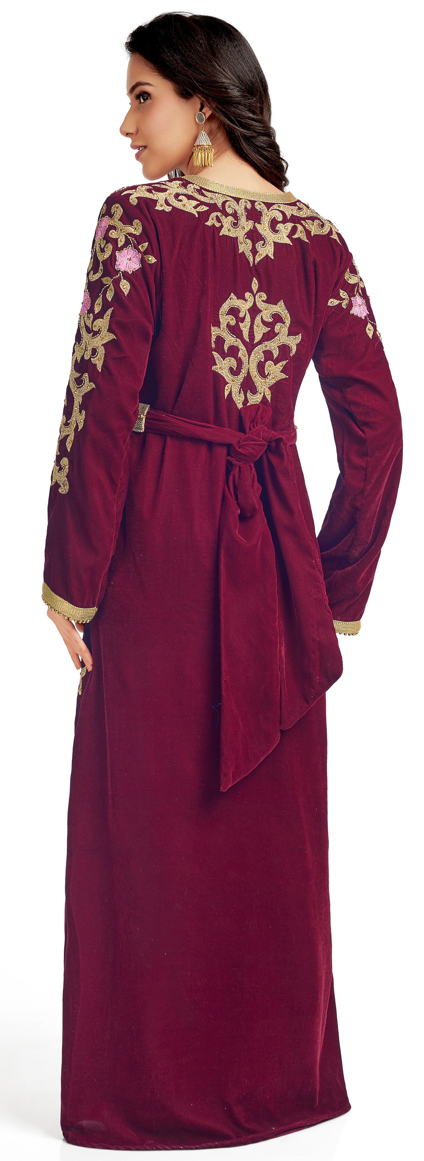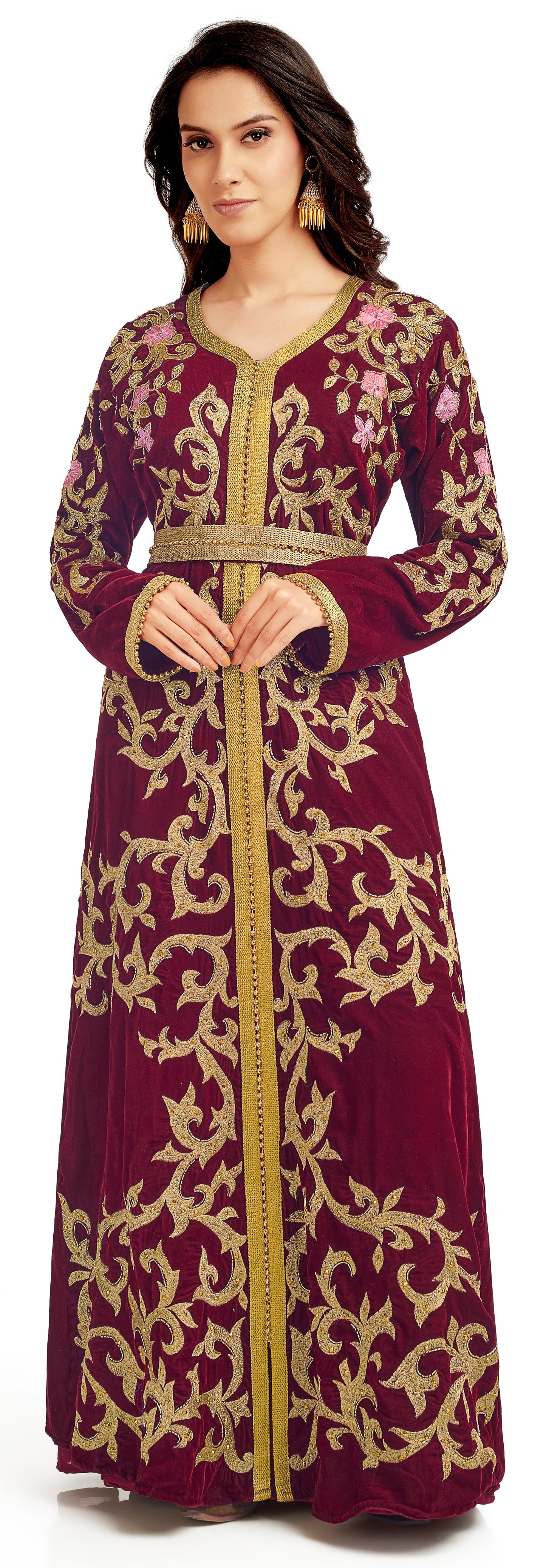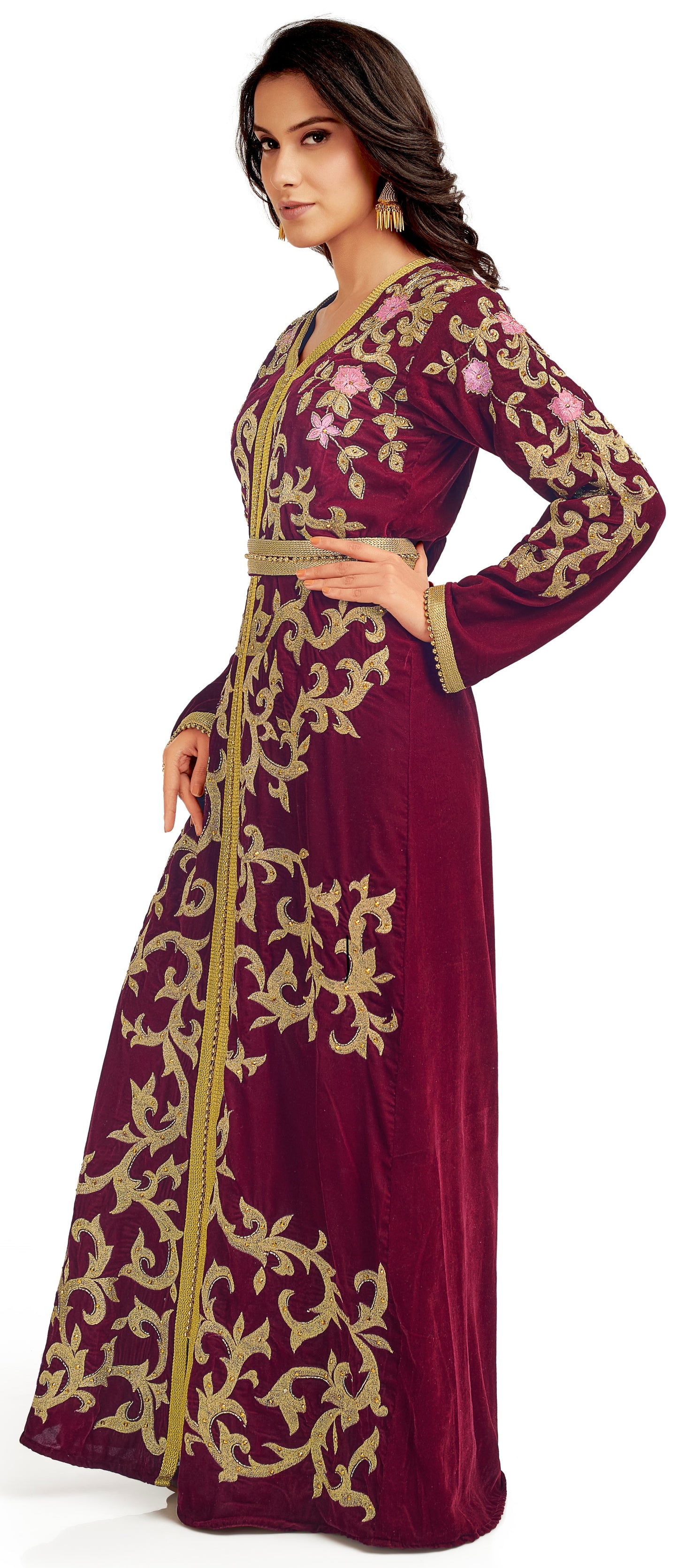 Velvet Fabric. Embellished by aari machine embroidery with golden luxe bead |