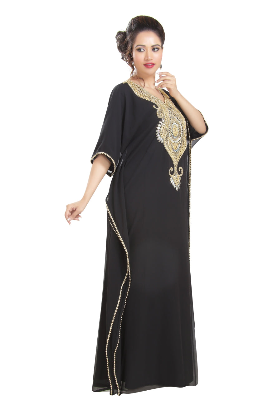 Brought to you from Maxim Creation, this is a stylish piece for your wardrobe making it a must-have item. Shine up your presence in the world of fashion with this hand embroidery mix color sequins and kaftan dress. This timeless attire is well complimented with a pair of heels and antique jewellery for a classy outlook. This dress is 1 piece set & half sleeve dress. |