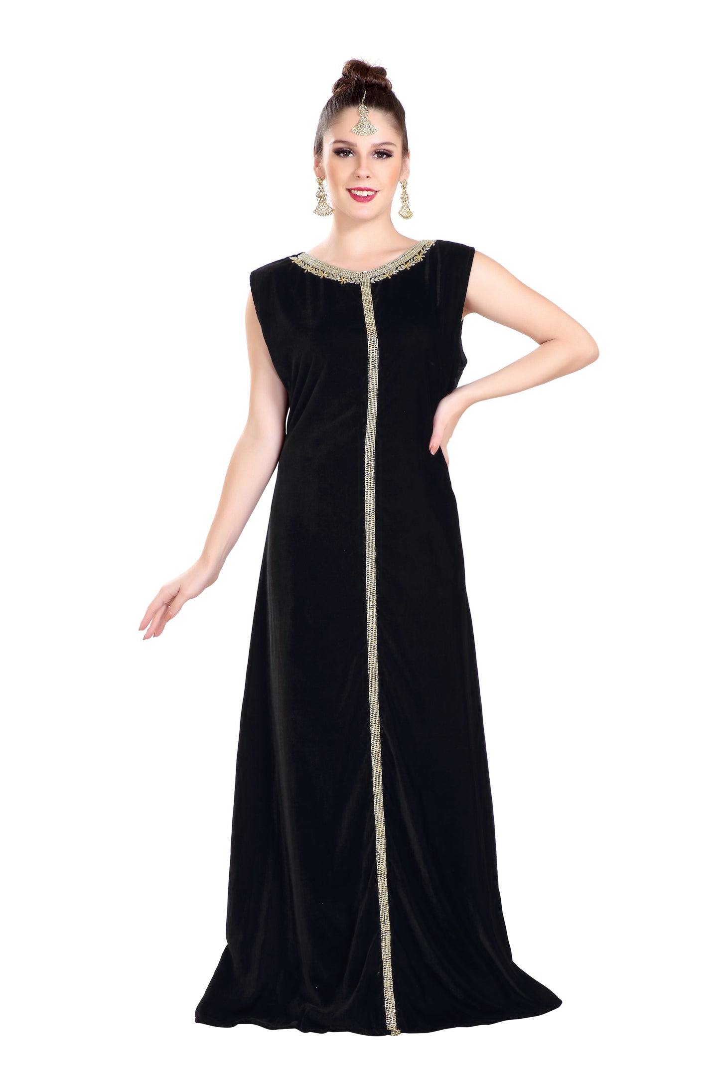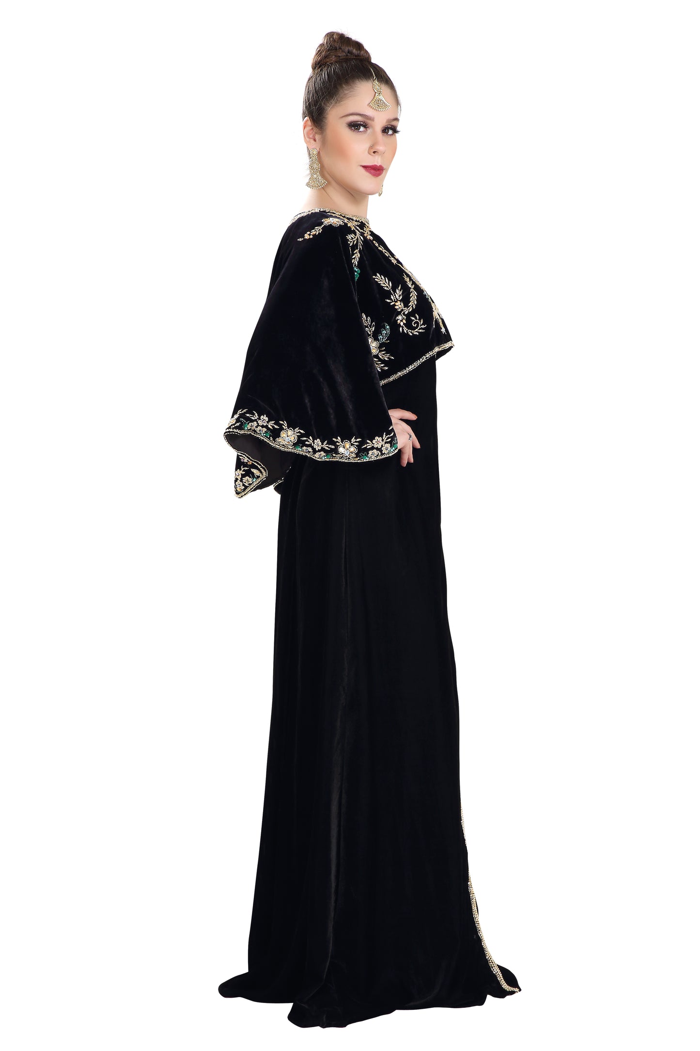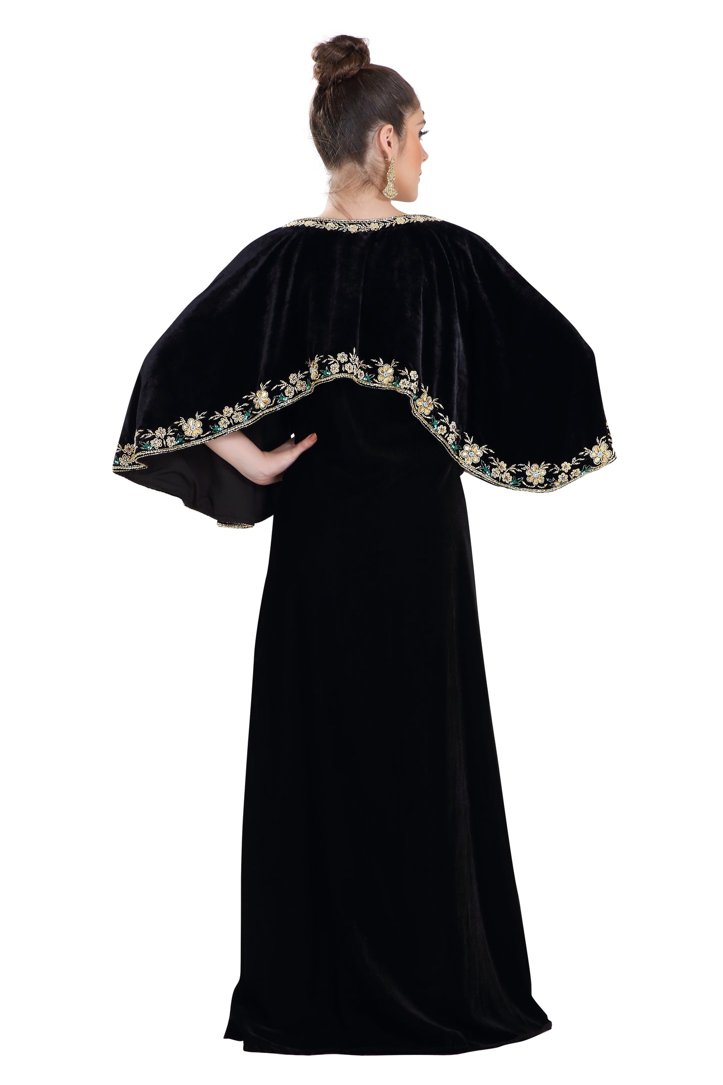 Arabian Kaftan Velvet Fabric with Colorful Crystal Embroidered Dress - Maxim Creation