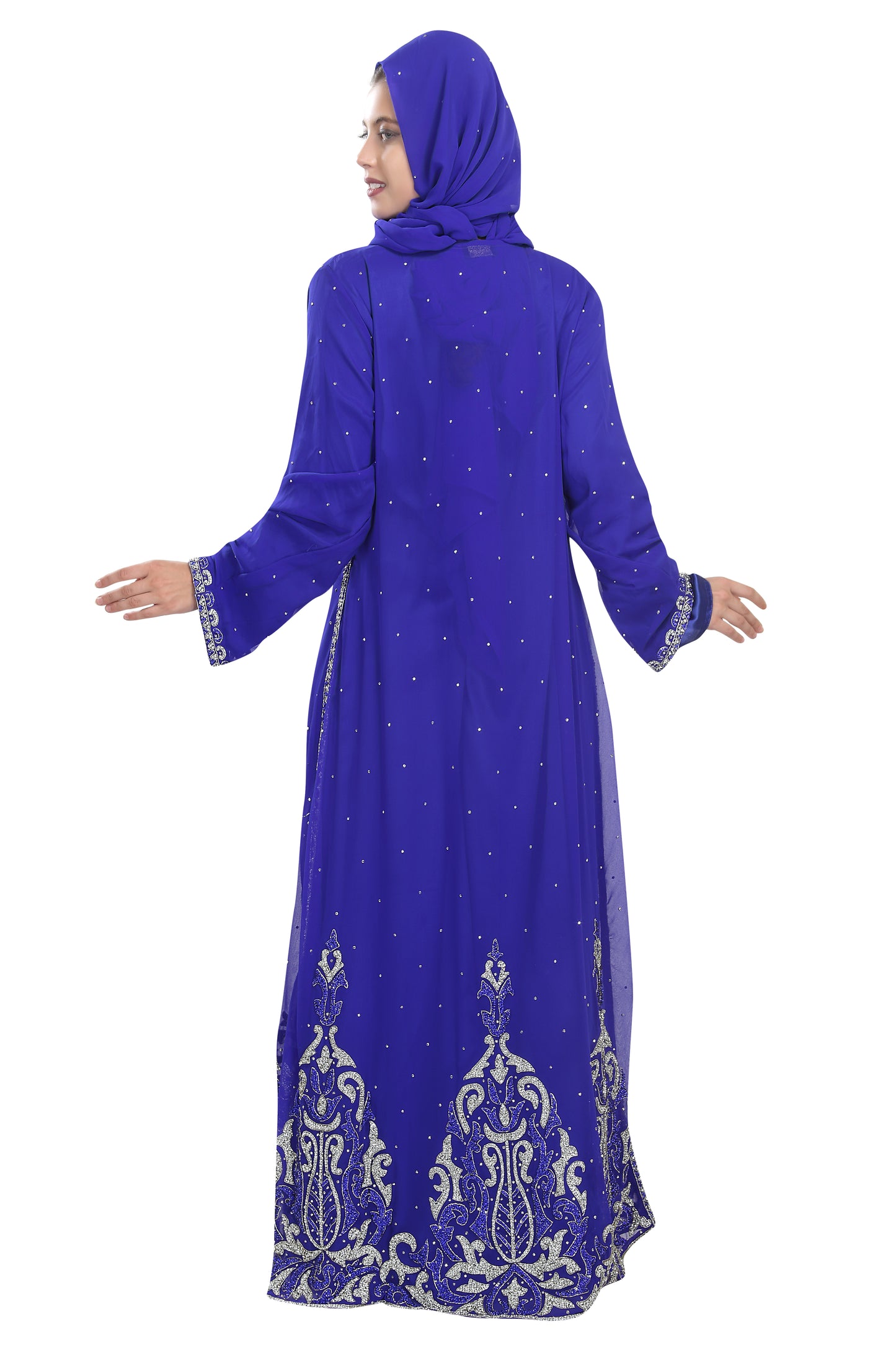 SILVER HAND EMBROIDERED DUBAI KAFTAN 5533 - Maxim Creation